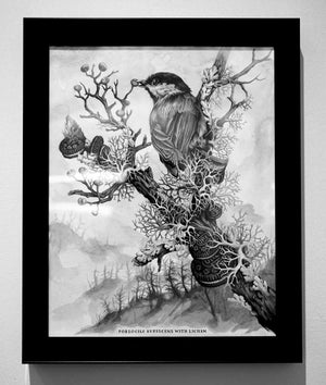J.S. Weisgraduated from James Madison University in 2005 with a BFA and a concentration in printmaking. Weis began exhibiting his artwork internationally as well as across the United States in 2014. His current works mix flora, fauna, and little artifacts of human production, exploring the space between the idealized purity of nature and the day-to-day consumption that threatens it. The artist currently live in Portland, OR.