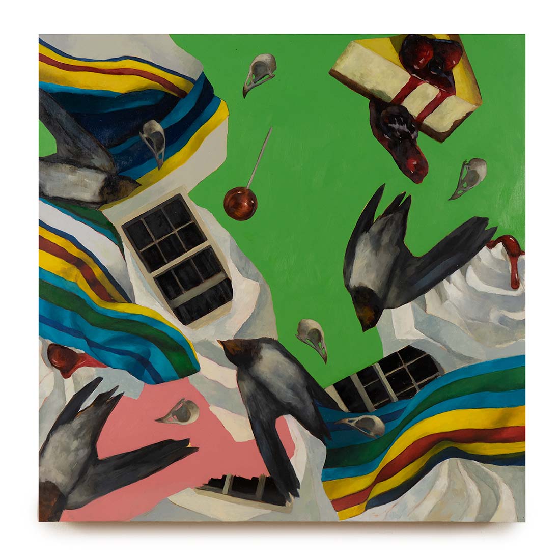 Matthew Robertson was born and raised in San Francisco and graduated from the Academy of Art University in 2012 with a BFA in illustration. He currently lives and works in Berkeley, California. Robertson’s technical oil paintings are simultaneously chaotic and controlled as he masterfully weaves the two components into one canvas to intuitively explore the tenuous balance between real and abstract forms. The new series vibrates with a sense of innocence described by bold colors, geometric forms, and spontaneous lines which merge together harmoniously with an expert sense of realism, to create a body of work that is both nostalgic and contemporary.