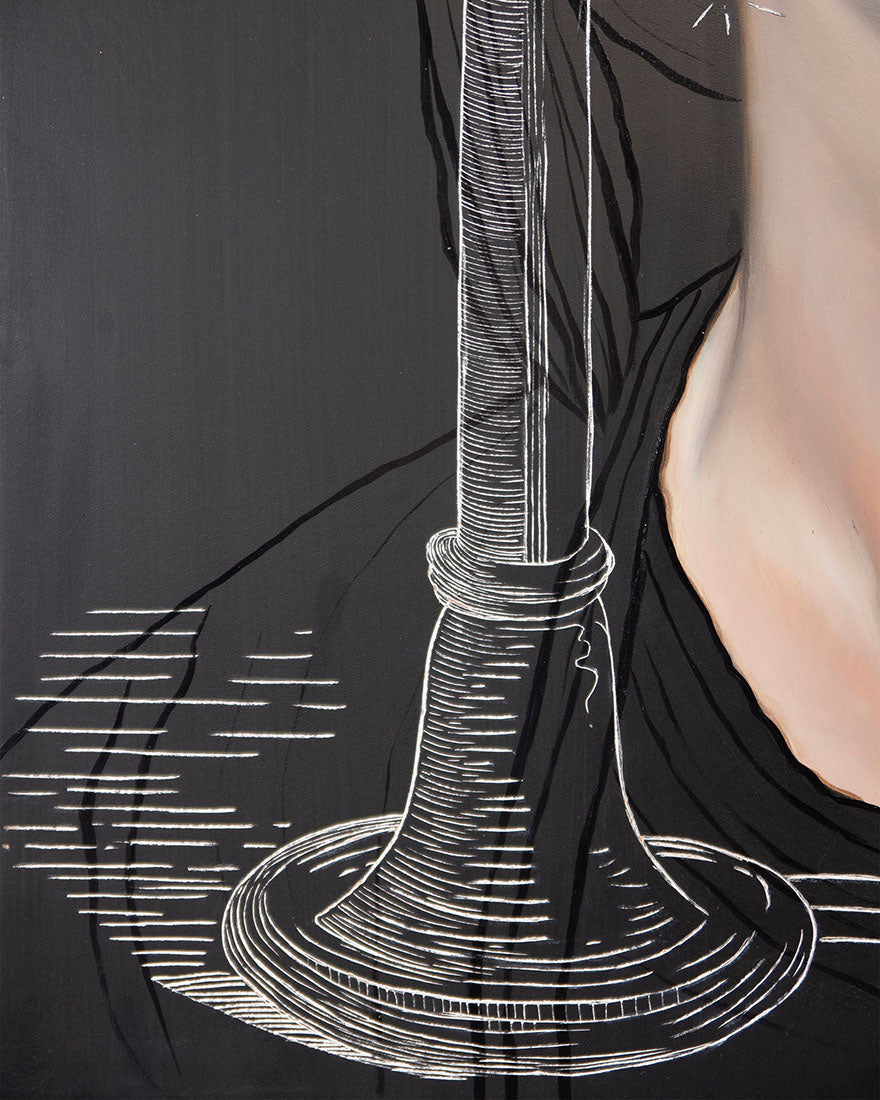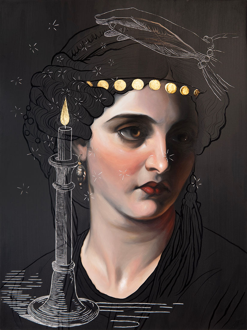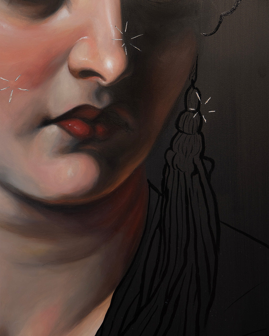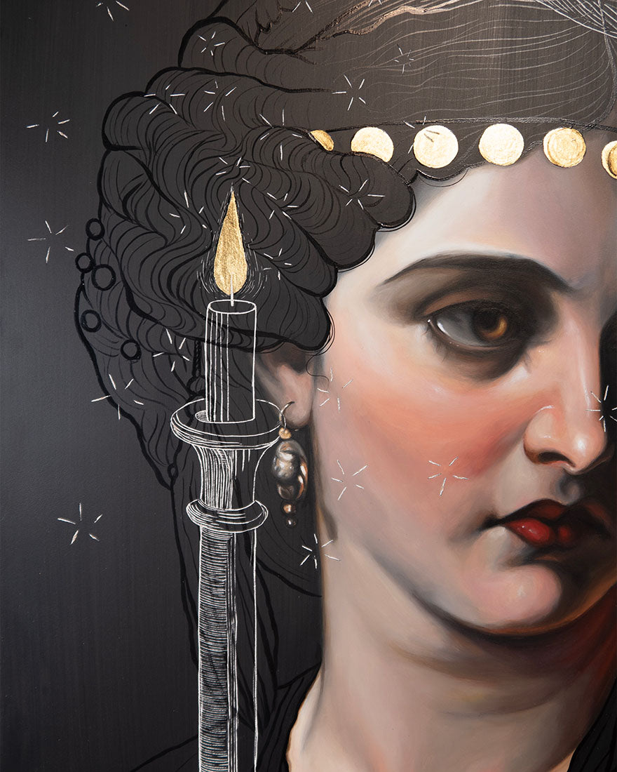 With a love for European history, MacLean’s focus on women was born after years of reading male driven histories. Her work now seeks to celebrate the many women in historical portraits, either without name, known only in reference to their male relations or entirely unknown, giving a voice to the silenced.