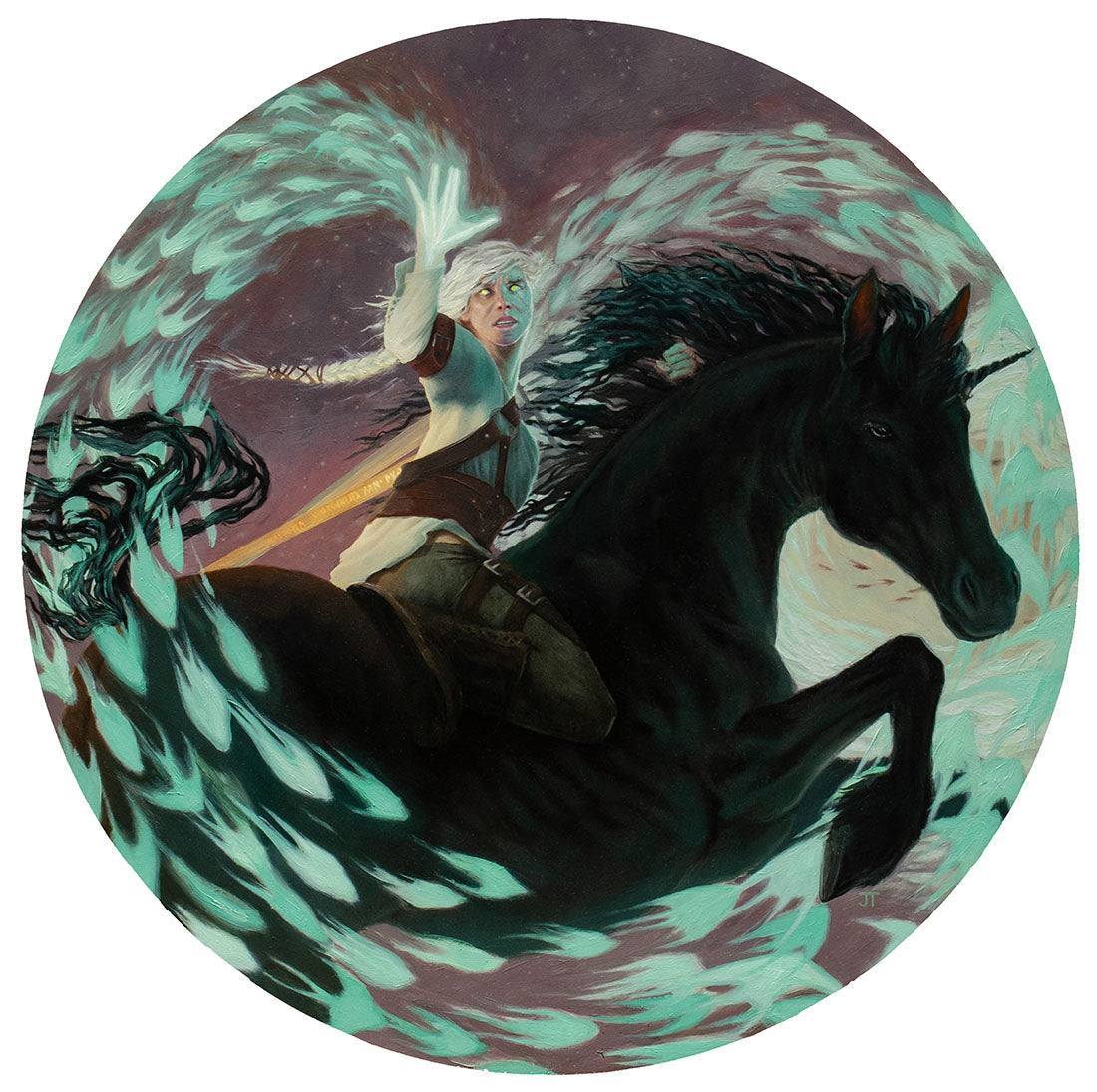 Jo Tomsick grew up in Cleveland as the shy visual artist in a family of extroverted musicians. She found escape and belonging in books, video games, and imaginary friends. Most of her free time was spent reading, sketching, and dreaming up adventures in otherworldly realms. As an adult, making authentic art for her means casting back to the unfettered imagination of childhood, and diving into the stories and imagery that inspired her then.