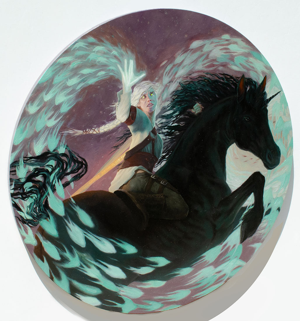 Jo’s approach to oil painting combines an academic mind set with experimentation. Implementing a rigorous concept and design process helps her dial in the precise emotional message for each painting, while thoughtfully crafting the image. Dramatic lighting and dynamic composition often work together to unify the narrative of each piece. Jo frequently works in layers in order to gradually coax her thematic elements to life, while also lending the work a dreamlike quality.