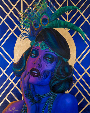Asia Renée is a Texas based oil painter who creates portraits that explore dark themes juxtaposed with bright colors and metallic elements she has labeled simply as Dark Pop Art. Juxtaposition and duality seem to be a constant theme in her life as she pursued a career in science and medicine while also working as an artist. Recently, she is focused solely on her artistry but pays homage to her medical field roots through her artwork, hence the skeletal system cameos in her portraits.
