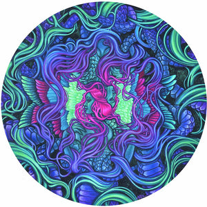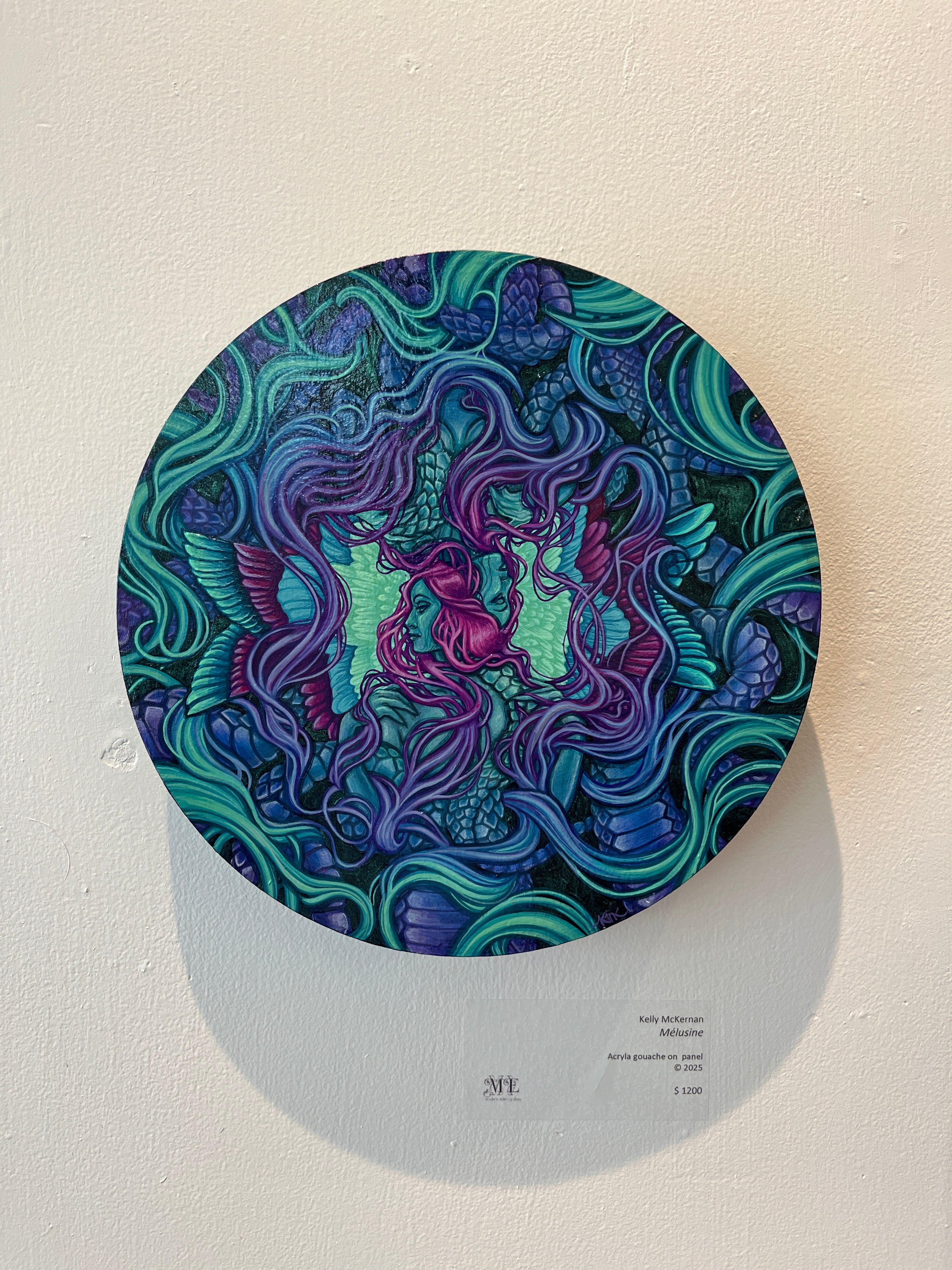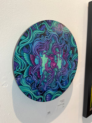 Kelly's personal work is primarily informed by their journey as an artist and human. Their art explores their personal evolution of an ever-shifting identity, informed by the sexuality and gender spectrums, motherhood, childhood trauma, escaping a religious cult, pregnancy loss and abortion, depression, divorce, neurodivergence, and chronic illness. All of this weaves itself into the quiet narrative of self-exploration behind Kelly's vibrant and ethereal paintings.