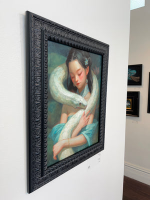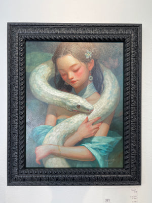 • Happy D. is an oil painter from the San Francisco Bay Area specializing in emotive female portraits with a psycedelic touch. The visual language of these paintings makes it seem as if the viewer is peeking at the natural world through a hyper-saturated, slightly surreal, and almost otherworldly lens.