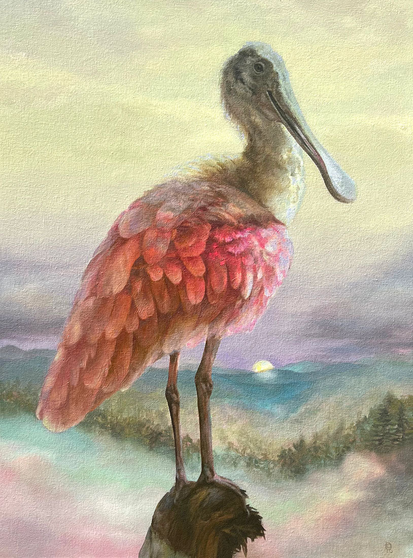 • Rhea O’Neill’s painting practice is deeply shaped by the beauty of her Northern California surroundings, where vivid panoramas and gentle light offer a rich landscape from which she draws color and form. Her work reflects a lifelong fascination with an imagined animal existence—creatures rendered with their own agency, navigating a world transformed by human influence. Within her paintings, nature emerges as a wild, slightly unknowable force that humanity continually attempts to shape, control, or confine. The animals she depicts are often constrained by the roles humans impose upon them rather than following their own natural instincts, creating an intentional tension between autonomy and captivity. O’Neill also engages with themes of environmental degradation, depicting discarded waste and pollution that animals are forced to cohabit with, highlighting the contradictions and consequences of human impact on the natural world.