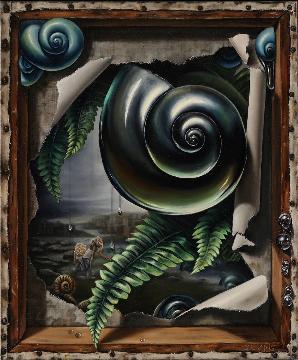 • J.L. King, is a second generation San Francisco native, Chinese-African American, born from artist parents and raised with a strong reverence for the arts. Her childhood memories of her large multiracial family, the strong scent of oil paints, turpentine, and the theater walls within San Francisco’s City College Campus have left long lasting impressions. Jennifer pursued a career in health and science while maintaining her creative practice in different mediums before committing her focus to oil painting. Sharp-focus detail is a lifelong endeavor that she pursues to this day. She practices her art out of her studio in the South Of Market neighborhood in San Francisco, California.