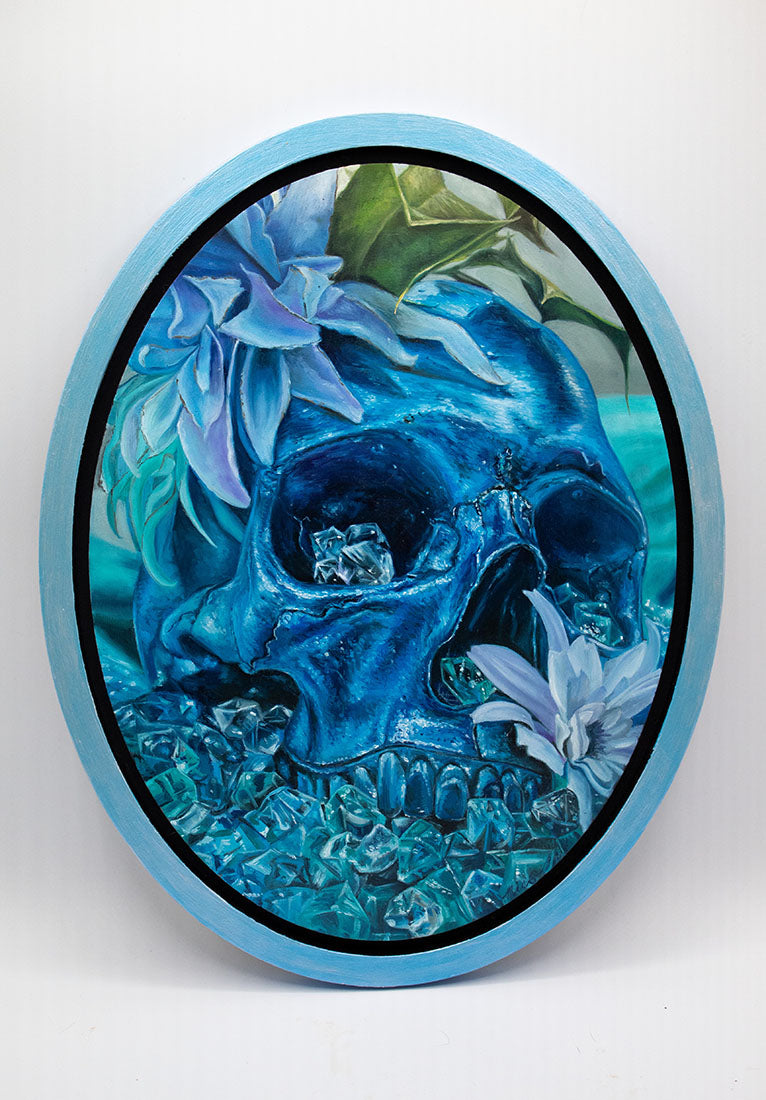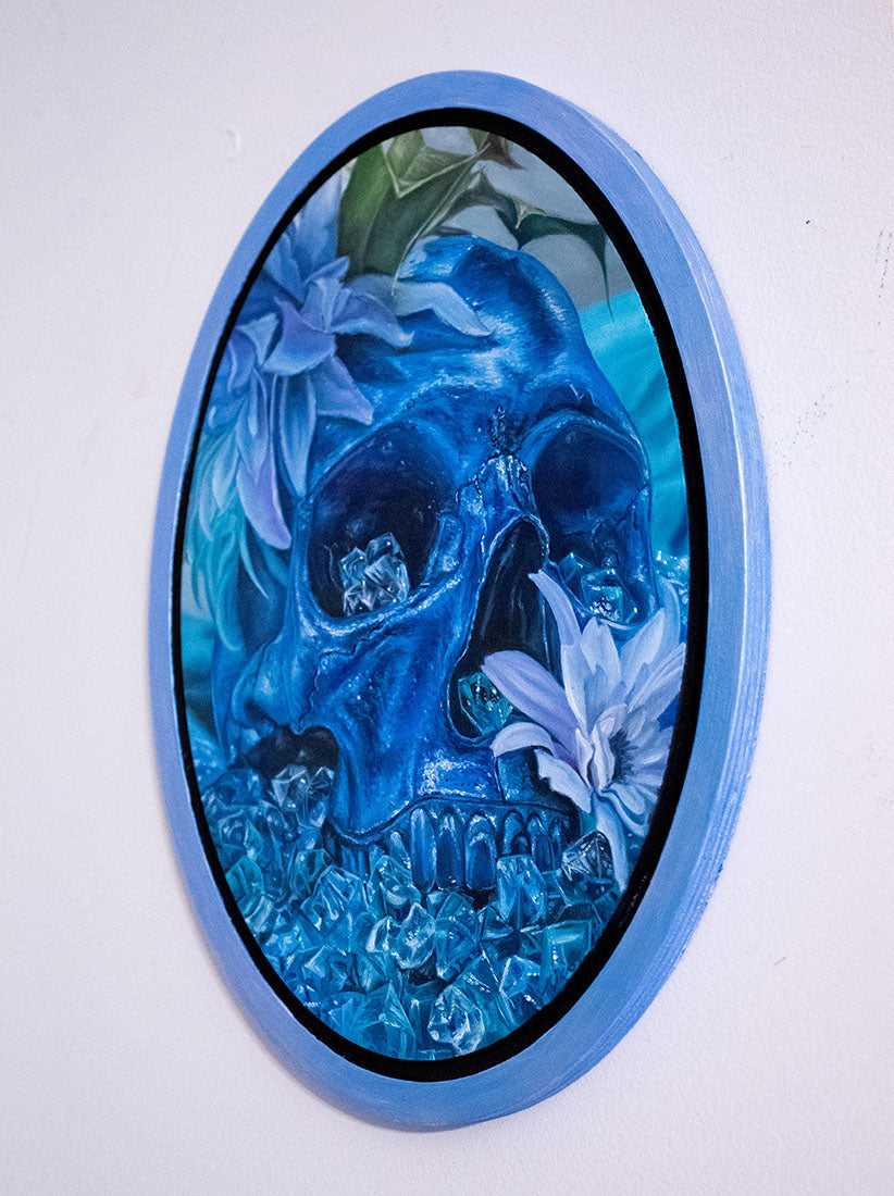 Cathcart uses her work to engage communities and spark conversations about pressing social and ecological issues. Her signature skull motifs blending elements of decay and renewal to evoke a sense of interconnectedness and transformation and serve as poignant reminders of mortality and the cycles of life, while her depictions of humans, flora and fauna symbolize adaptability and survival in changing environments. She identifies as a Deaf/ HoH painter, and has painted many pieces highlighting asl as a communicative tool. He mural “Flower” in South Bend indiana is thought to be the largest depiction of a Deaf person in the world.