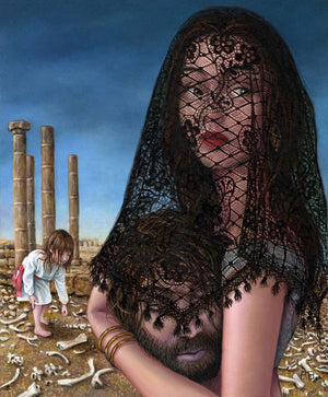 This is Her Story is a narrative series of portraits featuring both mythological and historical women whose fates have become iconic templates for female identity. The experiences of these women become intertwined with those of a modern child, a young girl dressed in white who features in the landscape of each painting. This unique fusion of past and present offers an exploration of artistry, the evolution of storytelling, and the influence of history on perception.