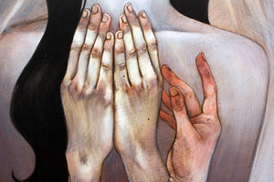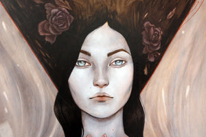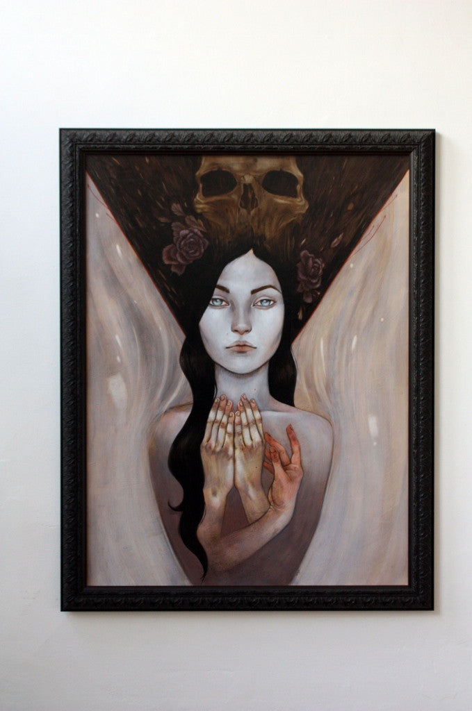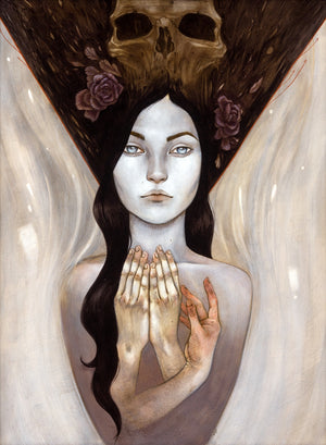 • Leilani Bustamante was born in Santa Rosa California and is a graduate of the Academy of Art University. She grew up between the suburban sprawl and rural Fort Bragg, where she draws inspiration from their simultaneous decay and growth. Her work often voices themes of mortality exploring elements of death, rebirth, beauty and spoil, the loveliness of the macabre and the mournful influence of osteological motifs. She currently lives and works in San Francisco and graduated from the Academy of Art University, San Francisco.