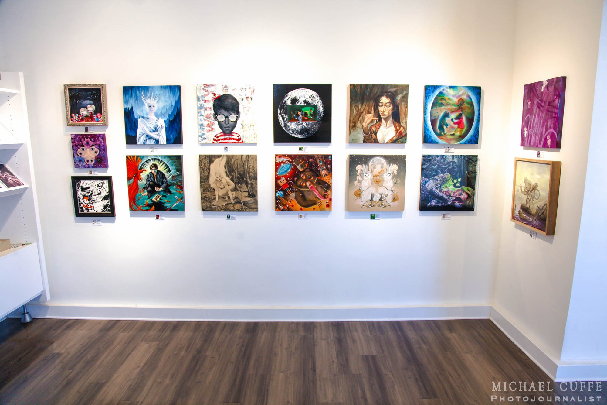 Catherine Moorewas born in San Leandro, California, but spent her formative, and awkward, teenage years amidst the neon lights and desert landscape of Reno, Nevada. In 1998, she returned to the Bay Area to pursue her fine arts degree and graduated from the Academy of Art University in 2004. She worked for several years as a freelance illustrator and graphic artist and began exhibiting her work in 2011. She currently lives with her husband, son, and doggy companion in San Leandro.