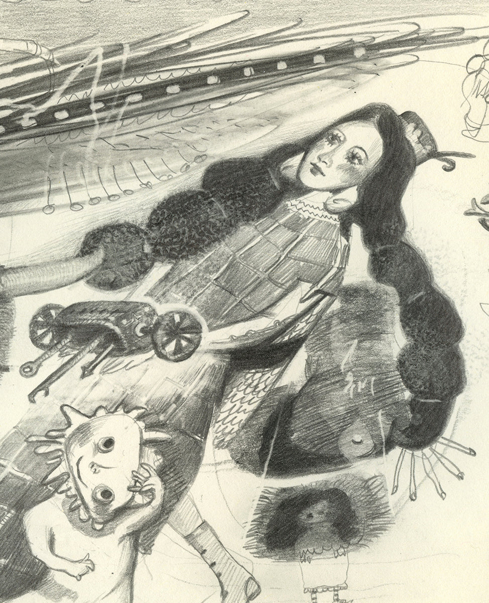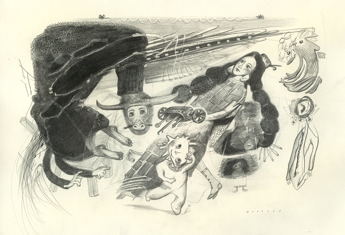 • Nadezda is a Russia-born (1985) artist based in the Bay Area of California. Focusing on narratives carefully gathered from the hidden chambers of her imagination and transformed into dreamscapes, her multifaceted artworks are the intimate windows into the inner world of her peculiar characters and creatures. Like a quilt stitched of many realities where personages and places are intertwined, overlapped, merged, and twisted - Nadezda’s mysterious world defies the mundane. Within these worlds, anything is possible. A non-linear creative process flows between different media and allows the artist to explore various vantage points of her creations. Such dynamic approaches inspire her mind’s eye to focus on the worlds within and evoke an uninterrupted, creative transmission which is then channeled through her paintings, drawings, sculpture, photography, writing and film.