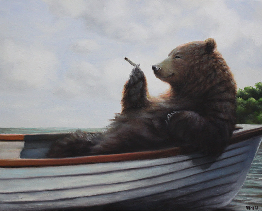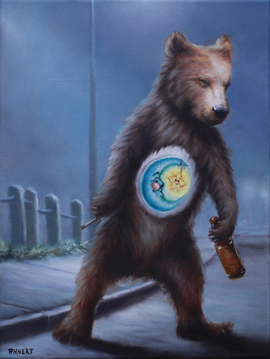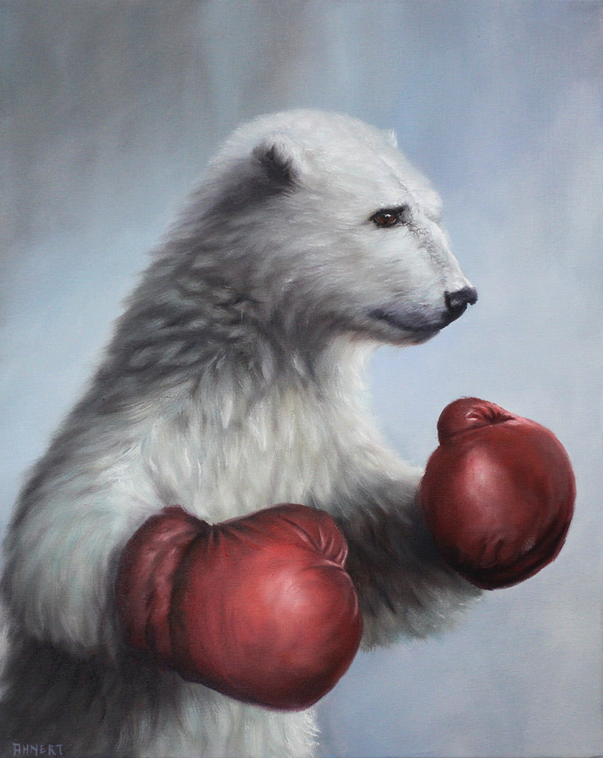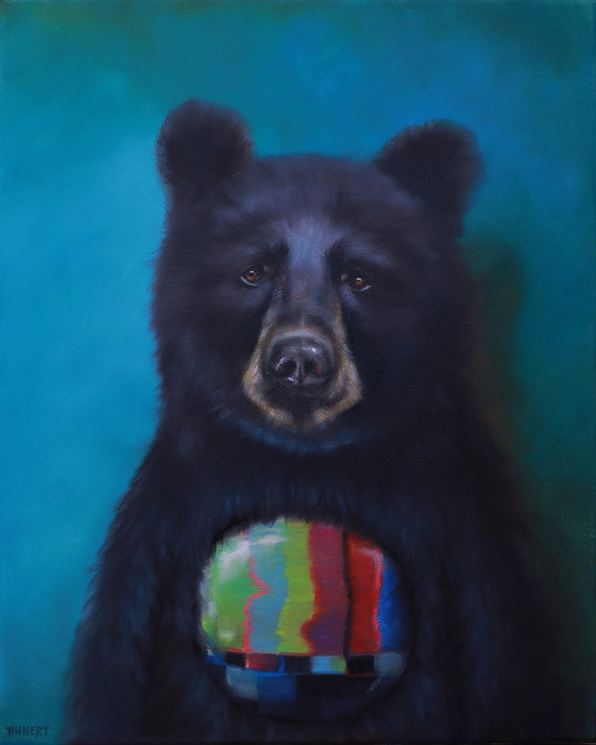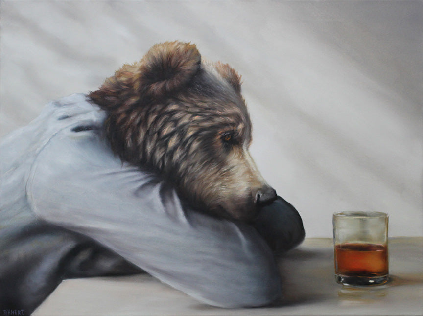 Toronto-based artist Richard Ahnert takes anthropomorphic painting to a new level, lacing it with a quiet, yet unmistakable animism– an abiding kinship between human and animal. He uses the relationship between animals and humans to explore themes of emotion, metaphor, and narrative with a satirical twist. Storytelling, understated humour, and deep reflection are at the heart of his practice.