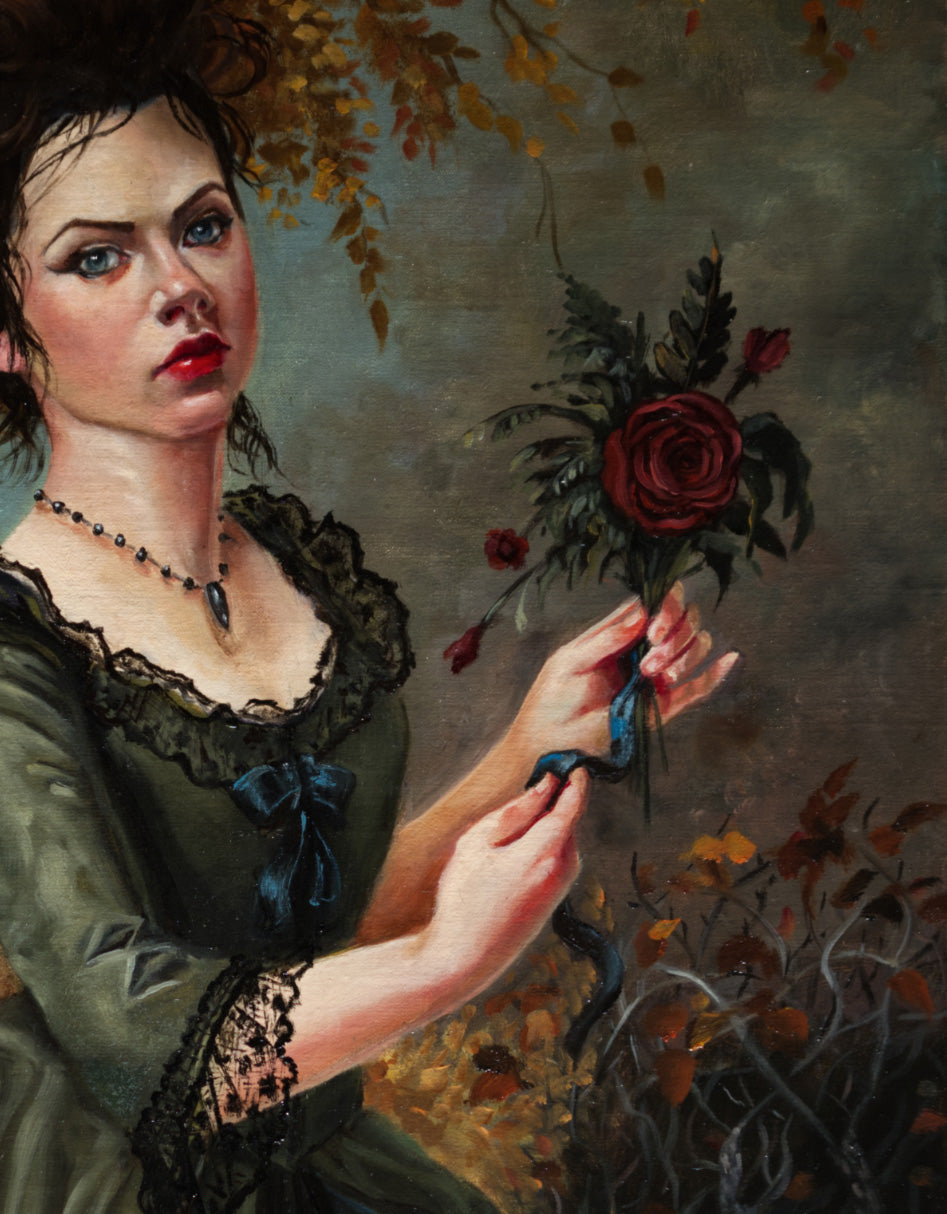 Catherine Moore was born in San Leandro, California, but spent her formative, and awkward, teenage years amidst the neon lights and desert landscape of Reno, Nevada. In 1998, she returned to the Bay Area to pursue her fine arts degree and graduated from the Academy of Art University in 2004. She worked for several years as a freelance illustrator and graphic artist and began exhibiting her work in 2011. She currently lives with her husband, son, and doggy companion in San Leandro.