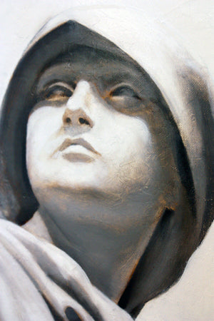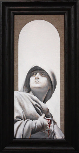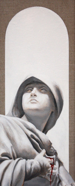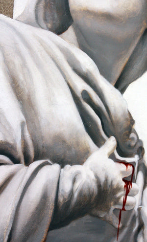 • These are portraits of the forgotten idols, the pieces of the past meant to preserve the highest order of our human ideals. As we move stubbornly forward in time and generations pass on, we see our crowned achievements of art and culture as dust.  The rate of decay is governed only by the constitution of the material, be it flesh or marble. These paintings are about interpreting the fragility of our idols and examining them from a humanist perspective. In the end, entropy prevails and only by finding beauty in decay and re-interpreting it do we carry on the indomitable human spirit of progress and artistic pursuit of beauty.