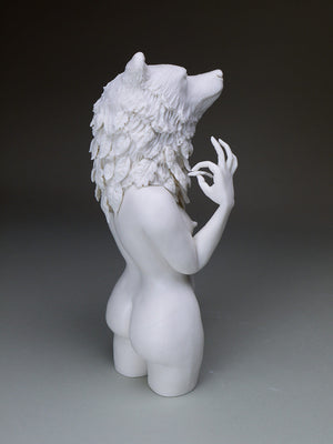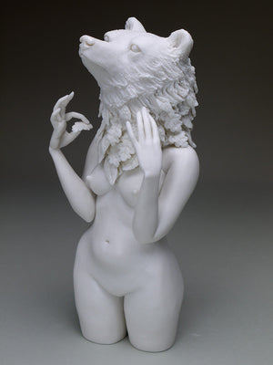 • Crystal Morey takes inspirations from an alternative upbringing where she closely connected with the natural landscape around her. Living in rural Northern California shaped her perspective on nature and how humans interact with land, animals and each other. Now living in an urban environment, Morey aims to show our relationship to the world around us through the fragile medium of porcelain. With this delicate material she creates a heightened sense of urgency and stress, commenting on our human evolutionary path. Morey received her BFA in Ceramic Sculpture from the California College of the Arts and her MFA in Spatial Art from San Jose State University. Her work has been included in many publications and online periodicals such as 500 Figures in Clay, Juxtapoz, Hi-Fructose, Beautiful Surface, Beautiful Decay and Sculpture Review. Morey has been an artists in residence at Watershed Center for the Ceramic Art, Penland School of Craft and the LH Project. Morey lives in Oakland, California where she is a full time studio artist, exhibiting her work in galleries and museums regionally, nationally, and internationally.