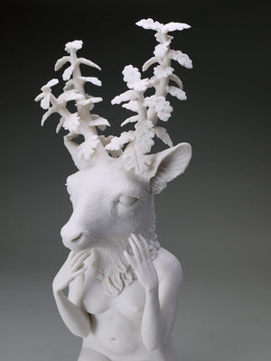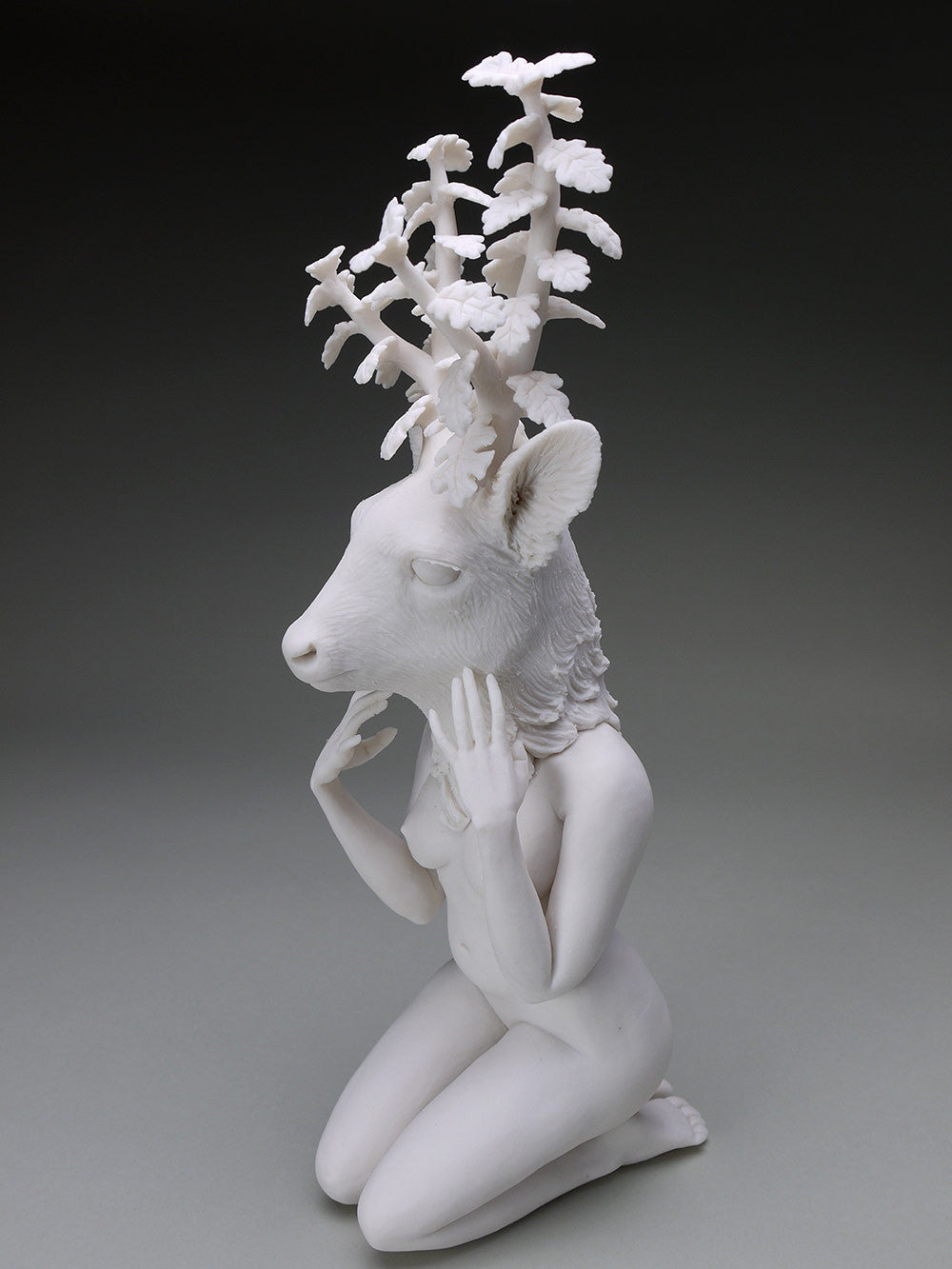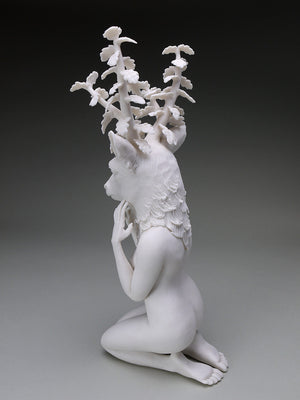 • Crystal Morey takes inspirations from an alternative upbringing where she closely connected with the natural landscape around her. Living in rural Northern California shaped her perspective on nature and how humans interact with land, animals and each other. Now living in an urban environment, Morey aims to show our relationship to the world around us through the fragile medium of porcelain. With this delicate material she creates a heightened sense of urgency and stress, commenting on our human evolutionary path. Morey received her BFA in Ceramic Sculpture from the California College of the Arts and her MFA in Spatial Art from San Jose State University. Her work has been included in many publications and online periodicals such as 500 Figures in Clay, Juxtapoz, Hi-Fructose, Beautiful Surface, Beautiful Decay and Sculpture Review. Morey has been an artists in residence at Watershed Center for the Ceramic Art, Penland School of Craft and the LH Project. Morey lives in Oakland, California where she is a full time studio artist, exhibiting her work in galleries and museums regionally, nationally, and internationally.