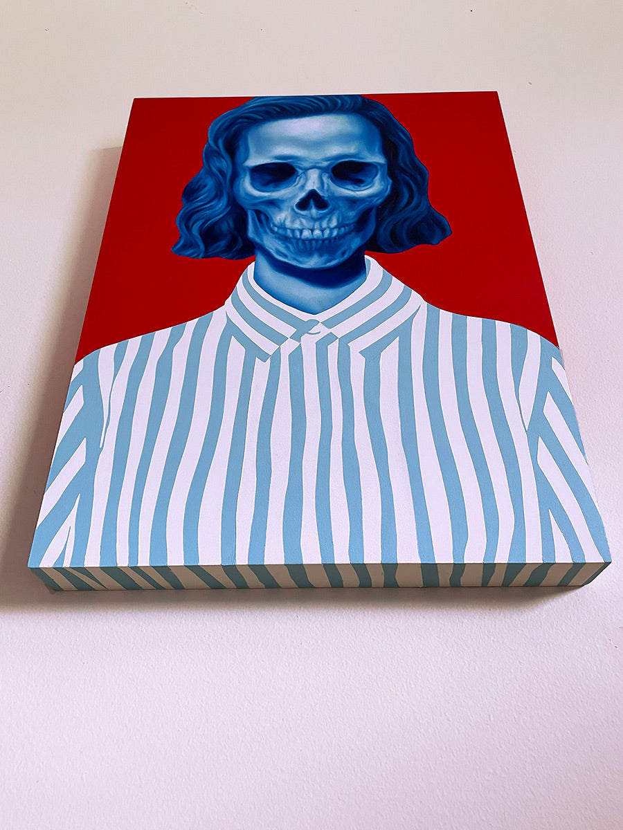 Morgan Booth is an established Pop Figurative artist based in Toronto, Canada. Her signature blue figure oil paintings use surreal colour choices and figures to explore concepts of identity and discovery of self. Playing with the perceptual experience and physical response to colour, Booth uses blue tones to evoke feelings of calmness and contemplation, while using the intensity of warm colours to stimulate.