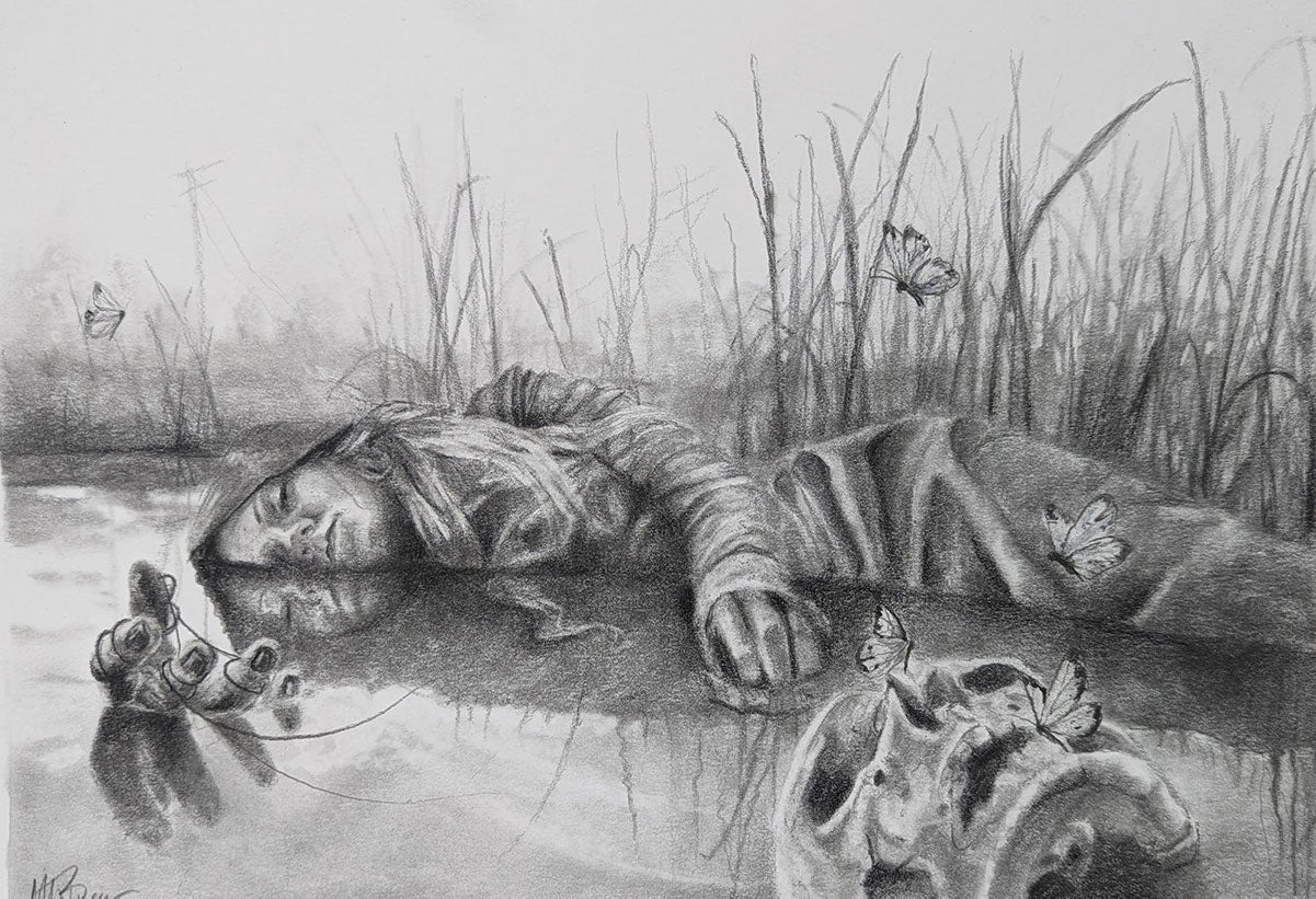 • Megan Buccere (pronounced bus era) is a narrative painter who works primarily in soft pastels and oils. She attended Louisiana State University, holds a BS in Art Education, and has taught advanced and talented high school art for the past 15 years. Buccere's painting style features soft surreal works that blur the line between beauty and fear, creating stunning pieces with an edge. Her use of coincidental, accidental, and unexpected connections, such as her use of strings, multiple hands, and all knowing eyes, often leaves viewers orphaned with a mix of conflicting feelings and thoughts.