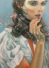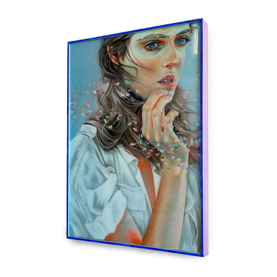 Seemingly light hearted, it explores the duality between youthful naivety and anxiety-riddled adulthood. The often female figures, fierce but fragile, gazing distractedly into the beyond within their own “internal psychic landscape.” The work is imbued with a mysterious narrative and sensation of knowing that each character in the work has a full and complex history that the viewer can never fully comprehend. The paintings have a signature prismatic palette, visually stimulating and playful while expressing an underlying sense of uncertainty and unrest. Martine Johanna has had international success exhibiting extensively in the Netherlands and abroad. A background in fashion design has influenced her depiction and ease with the female figure. Inspiration for her work include a mixture of childhood and autobiographical memories and experiences, documentaries on human nature, independent films and history.