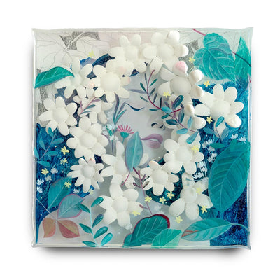 Joanne describes her work by saying, “I mainly use oil paints when I create images. Most of subject matters of my paintings are from old memories. I used to live in the middle of a forest and spent a lot of my time with wild trees and animals when I was young. However, I avoided reproducing simple images of those memories. The thing I was focusing on was the impression of them. The visual images in my head are vague and hard to remember, but I believe that the feeling of it was the thing that lasts.”