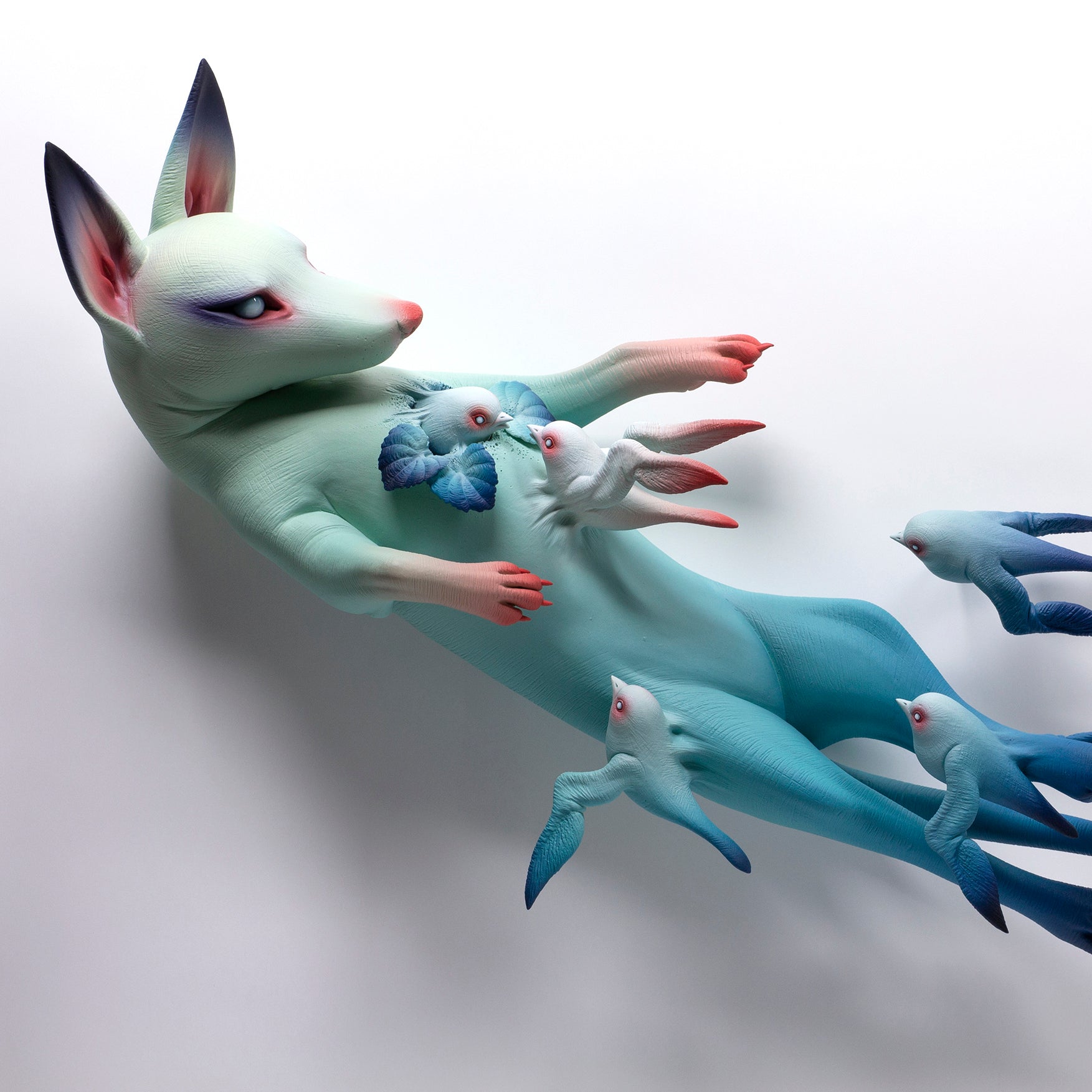 Her work is about fragility, the tension created during a moment of heightened interaction, where two or more beings polarize, where teeth meet claws meet heart, and yet this moment is perfectly frozen, encapsulated in such a delicate, and ethereal ceramic form.