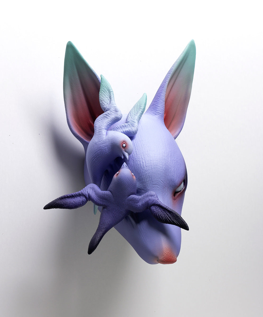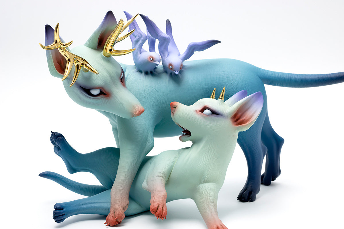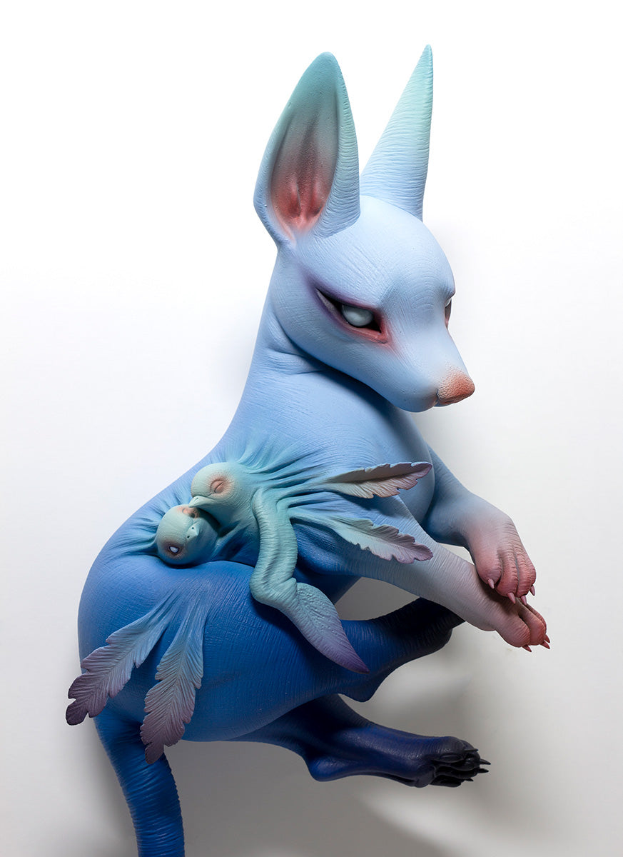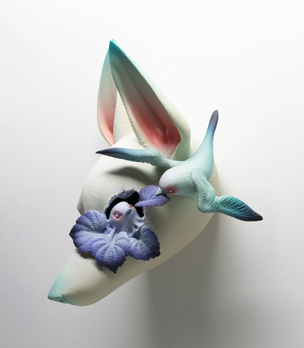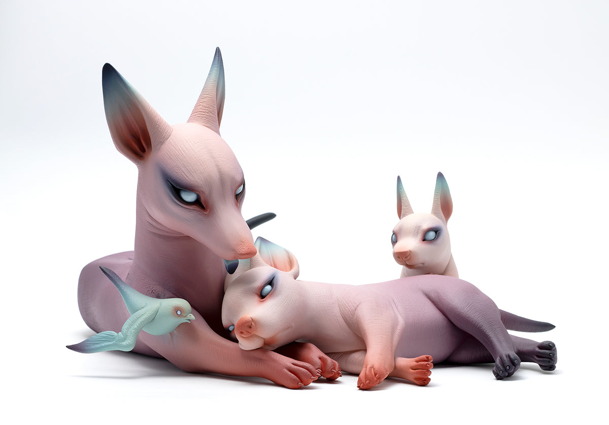 Erika Sanada's early inspirations stemmed from creatures and characters of horror films. Watching these stories were a way for her to escape unpleasant realities during childhood. She creates intricate, hairless ceramic creatures—often adorable but also unsettling and bizarre. Her artwork has been published in Hi-Fructose Magazine, Hey! Magazine and Beautiful Bizarre Magazine and in the permanent collection of the Crocker Museum of Art. Sanada is represented by Modern Eden Gallery in San Francisco where the artist currently lives and works.