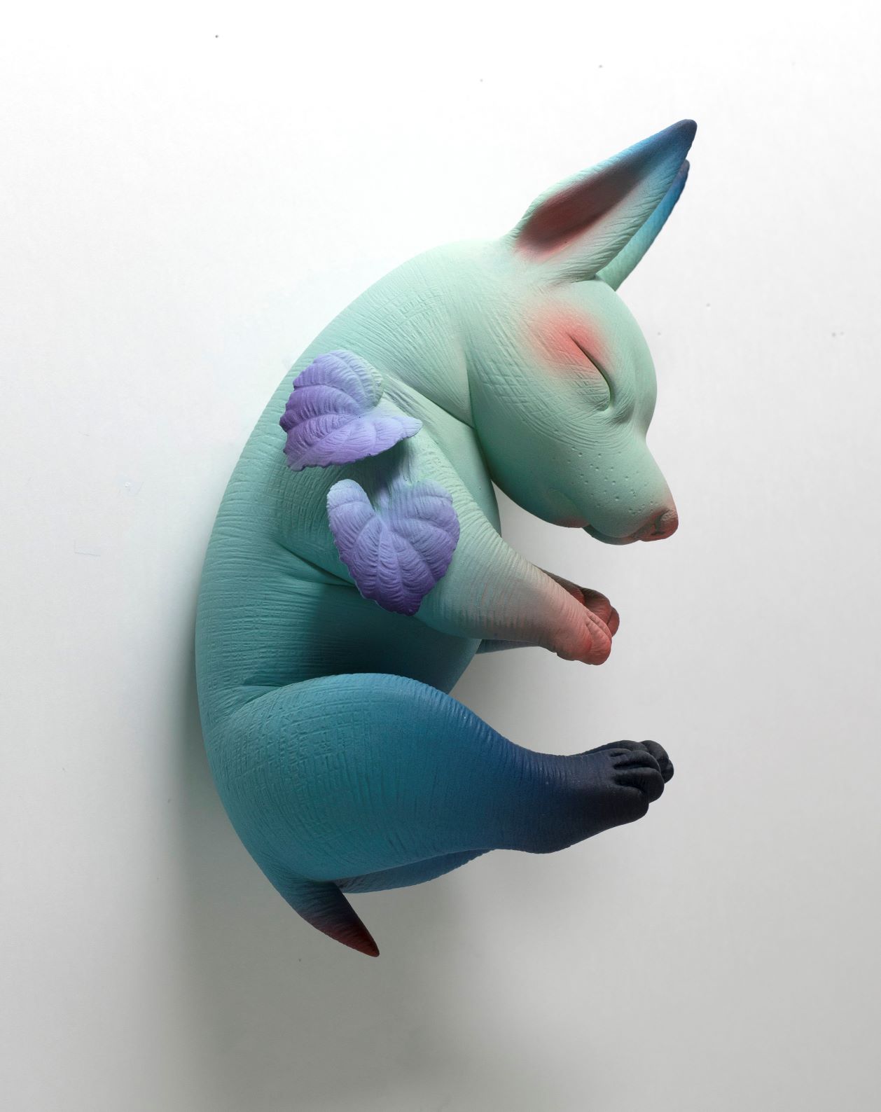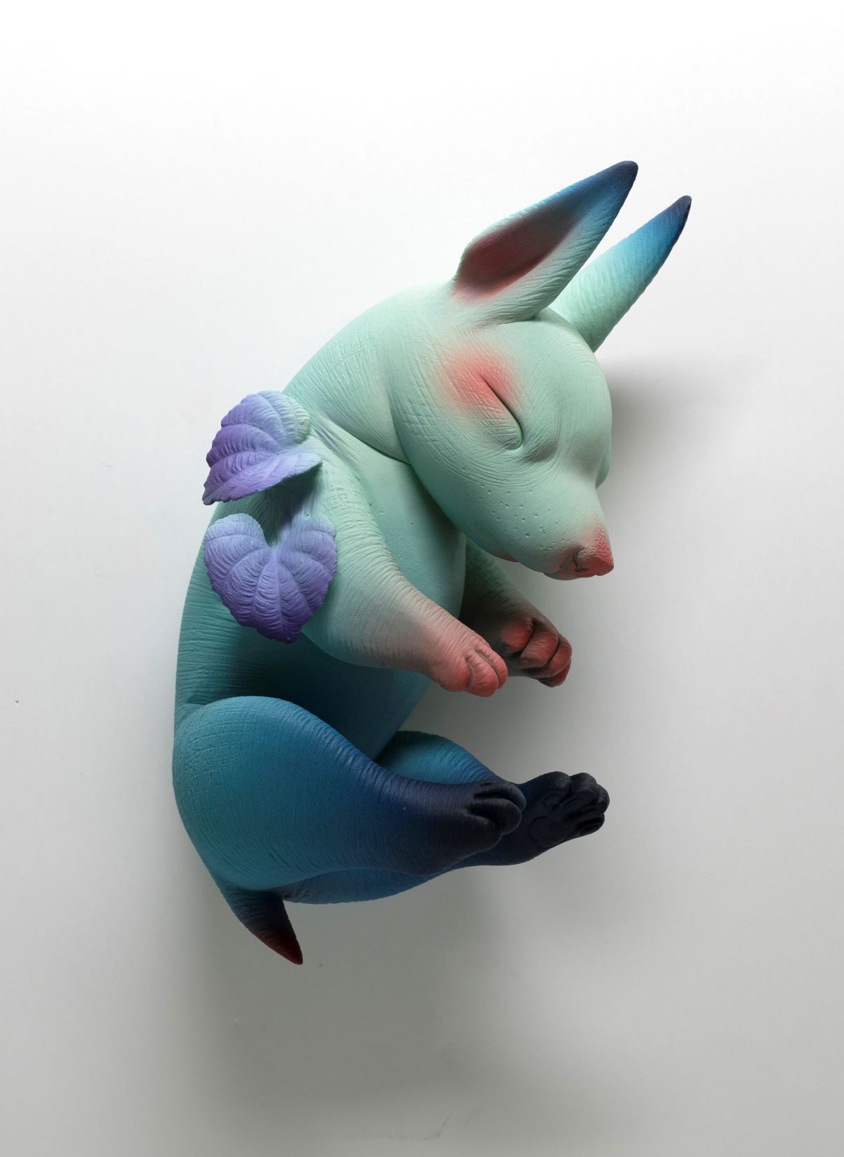 Erika Sanada's early inspirations stemmed from creatures and characters of horror films. Watching these stories were a way for her to escape unpleasant realities during childhood. She creates intricate, hairless ceramic creatures—often adorable but also unsettling and bizarre. Sanada is represented by Modern Eden Gallery in San Francisco where the artist currently lives and works.