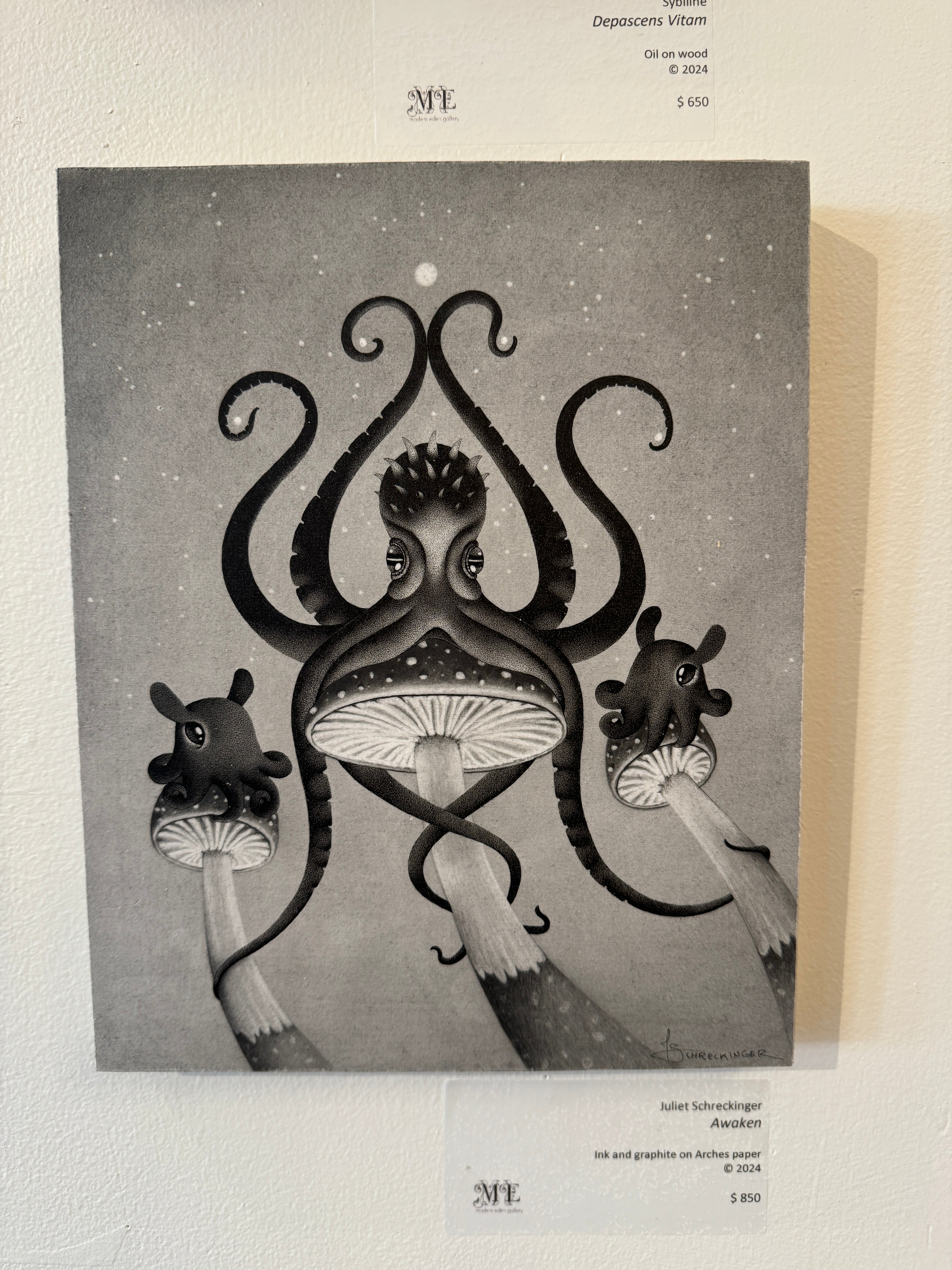 • Born in 1999, Juliet Schreckinger is a Long Island, NY based artist. Her work is typically created using a stippling technique in pen & ink and graphite, with occasional splashes of color. Juliet’s pieces are inspired by the ocean, nature, and all of the creatures within our world. Since the time she was a child, Juliet has been fascinated by black and white photography, colorless television shows, and film noir movies. Being exposed to the lighting effects and sharp contrasts shown in these photographs and films greatly inspired the type of work that she does today. Juliet’s work is centered around giving a voice to nature and animals, with the goal of showcasing their importance in this world. Through an illustrative take on fine art, she attempts to express a story in each drawing.