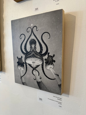 • Ink and graphite on Arches paper, mounted to birch panel, varnished
