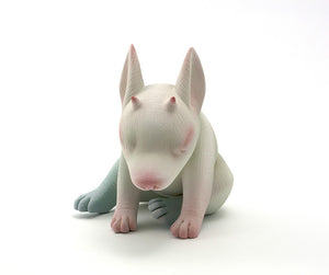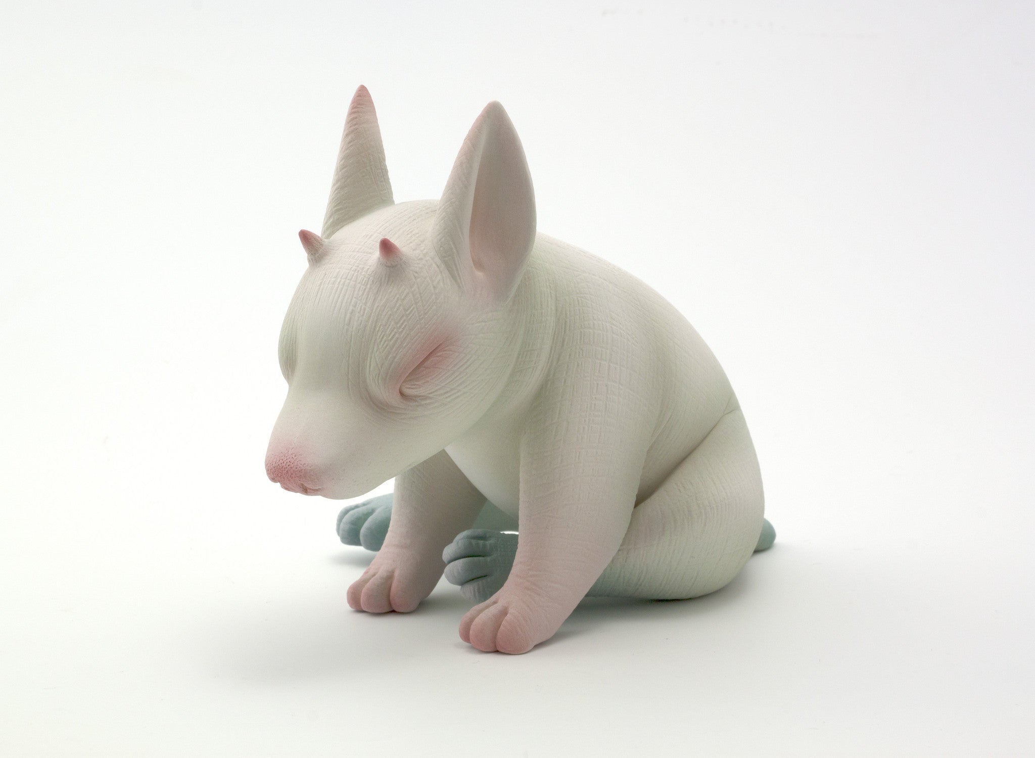 • Exhibition Statement from the Artist: My sculptural work explores my  anxieties. Early childhood experiences  drove me to doubt my self-esteem, developing  into a state of  worry and distress. To cope with these emotions, my parents gave me a dog and he became a great companion. I use the imagery of dogs in my work to represent the joy in life. However, underlying that happiness, I incorporate odd features into my dogs like extra teeth or ears to symbolize those lingering anxieties. Much like myself, my work is struggling  to find a balance between joy and sorrow.