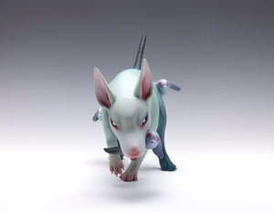 Erika Sanada's early inspirations stemmed from creatures and characters of horror films. Watching these stories were a way for her to escape unpleasant realities during childhood. She creates intricate, hairless ceramic creatures—often adorable but also unsettling and bizarre. Her artwork has been published in Hi-Fructose Magazine, Hey! Magazine and Beautiful Bizarre Magazine. Sanada is represented by Modern Eden Gallery in San Francisco where the artist currently lives and works.