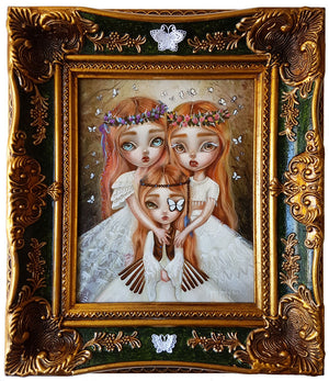 Her works embody a beautiful yet sometimes dark world inhabited by big eyed girls and improbable creatures. With a stirring of emotions translated onto each new work of art, Simona brings her love of the old fairytales and childhood imaginings to us in a unique and poetic way. She is a traditional artist and enjoys using acrylics, oils, watercolor, graphite and pencils.