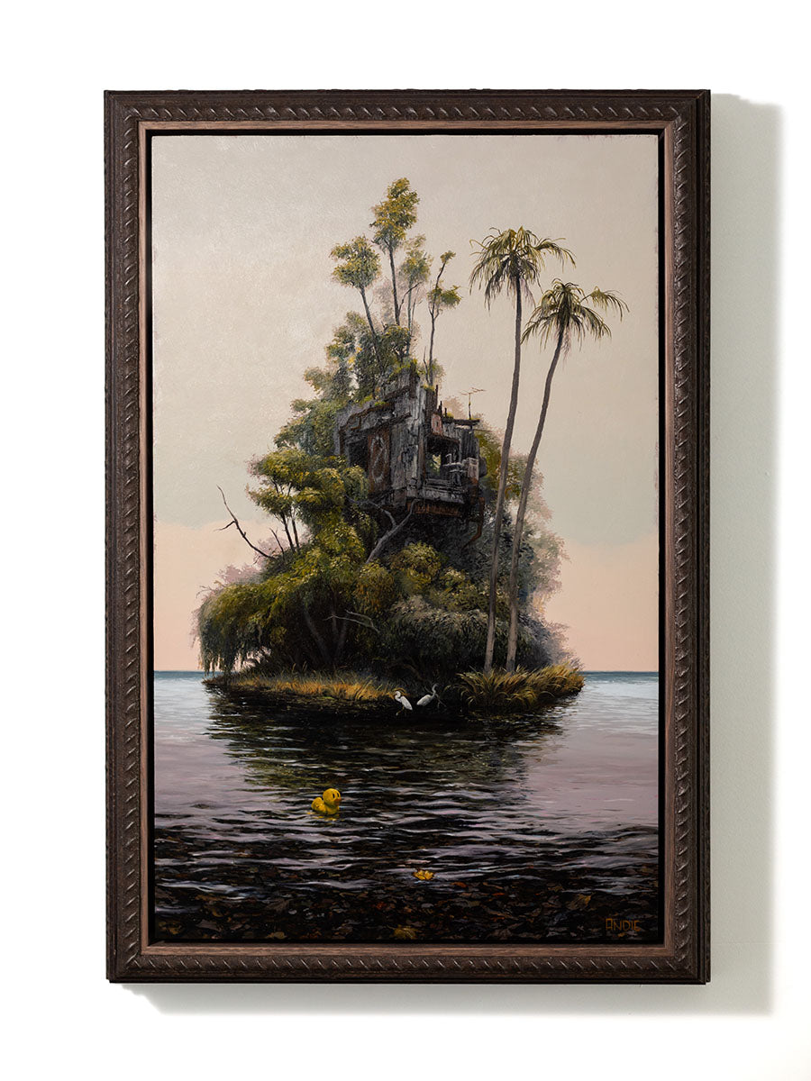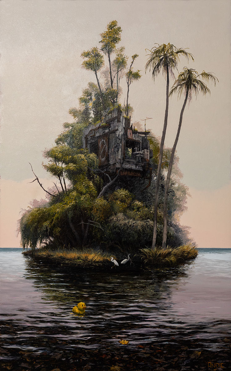 Andie Taylor is an Australian oil painter with a BFA in Illustration. His fine art work is structured around a framework of subtle narrative components, connected like the cables on an old synthesiser to the droning undercurrent of philosophical questioning. Themes spanning time, memory, entropy and identity weave and meander together, dividing at times to explore new ground, all exposed through series’ of veiled visual metaphors. Andie’s process is led by intuition, driven toward an aesthetic of balance somewhere between chaos and serene peace and intentionally avoidant of direct meaning. As a subliminal operation of self-discovery and reflection, each new work grows from the former, expanding as a universe of malleable icons at once, juxtaposed and harmonious. Andie’s worlds of brush strokes become tangible through his experience of this reality, but they can only be as meaningful as we may understand or assign them to be.
