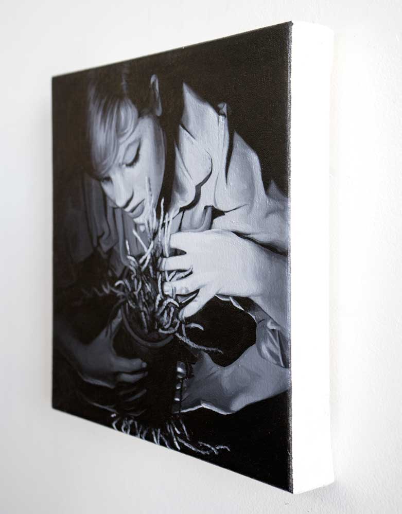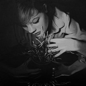 Rebecca Mason Adams is an artist based out of Providence, RI. She graduated from RISD in 2006 with a BFA in photography. Her paintings focus on black and white portraiture referencing stylized and graphic photography and film. She transitioned into painting after school, utilizing her skills in photography and lighting to aid in her subject matter.
