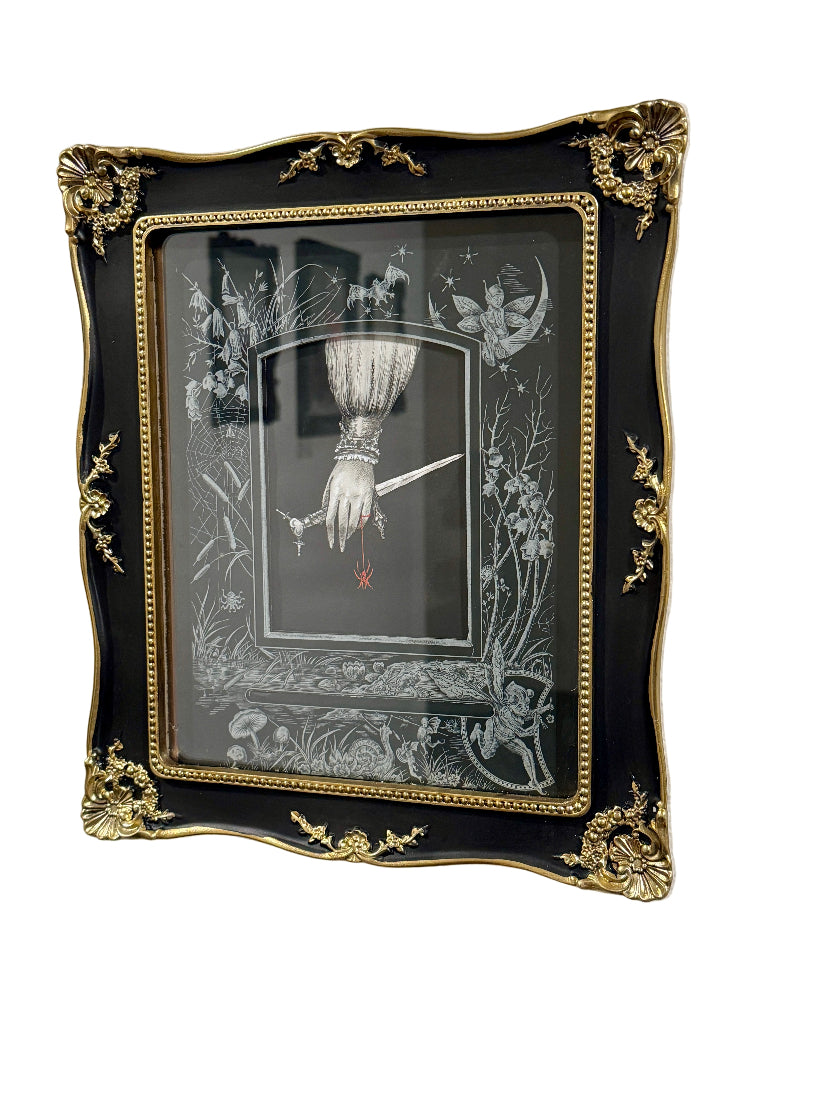 • Mary Syring is a San Francisco-based artist and illustrator whose work draws on European folklore and the surreal world of her imagination. Her portraits blend haunting and delicate qualities, weaving historical influence with contemporary emotion. The result is a body of work that feels both timeless and uncanny, existing in a space between the past and the present.