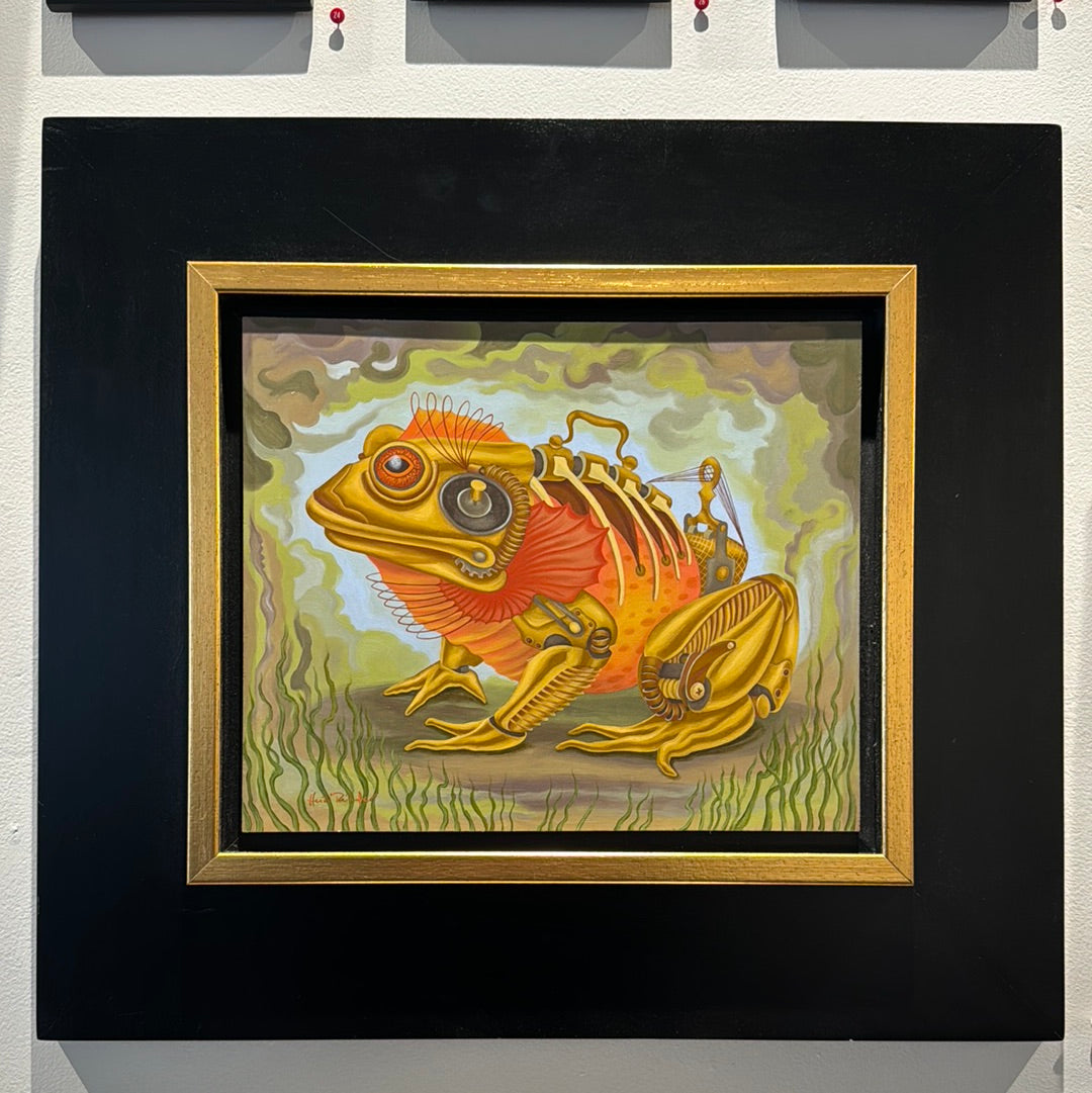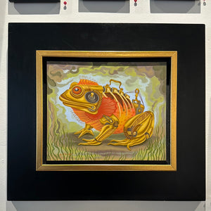 Her paintings often depict subjects comprised of seemingly incongruous objects characterized as symbolic, which form a complex composite of elements and add a contemporary spin to often classical icons. Taillefer's work highlights our growing hybridization with technology, in which she depicts “machine-like” constructions. Her approach is to infuse primordial aspects of the human condition into these hybridized humans and animals, and seeks to remind the viewer of the inescapable nature of our being despite our increasing merger with technology.