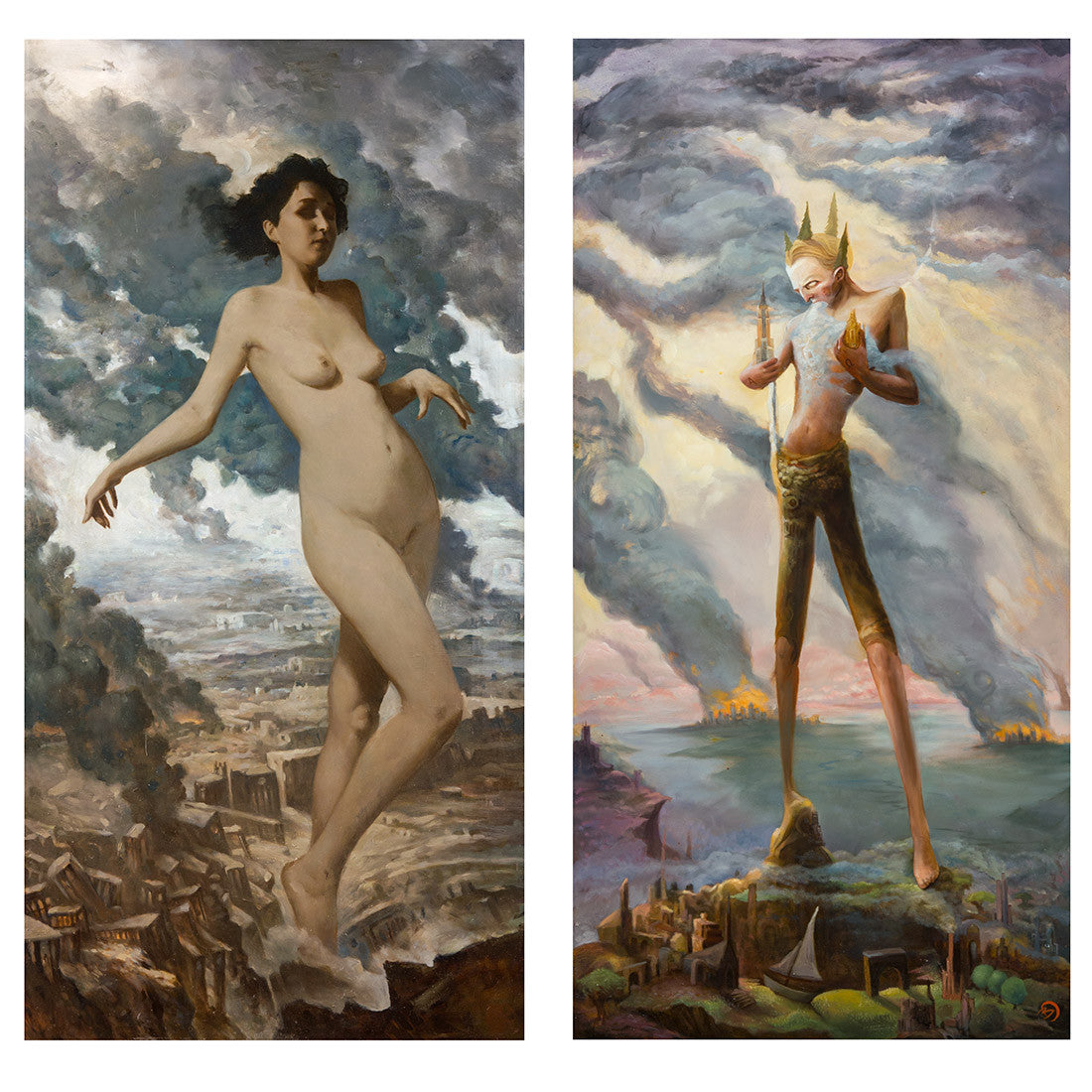 • This piece is part of a 2-Panel diptych in which Bradley Platz and Michael Ryan have collaborated. The dramatic piece depicts Sophia and the The Demiurge, Gnostic and platonic deities responsible for fashioning the material world out of primordial chaos. View the accompanying "The Demiurge" here.