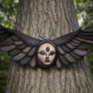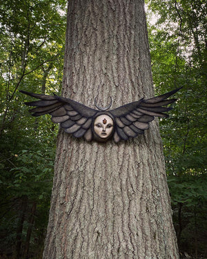 Don’t get spooked — despite their gnarled hands, corpse-colored skin and sunken eyes, Scott Radke’s creations come in peace. “If you wanna get creepy with it, it’s real easy! Any film or music video [they are] involved in goes straight to the dark side,” says the 44-year-old sculptor, whose work made a cameo appearance in Tim Burton’s “Alice in Wonderland.” Even if Scott prefers to bring his caterpillar people and bodiless, baby-cheeked creatures to life in suburban Cleveland nature preserves, he understands the desire to situate them in more shadowy worlds. After all, many of them were born there: Before discovering yoga and meditation, Scott displaced his anxiety and panic attacks by carving their faces. “I’ve always been told I was like Eeyore. I’ve had emotions and feelings I wanted to express and there was just no way I could do it with words. It comes out with what I do,” he says. These days, Scott lives with his daughter, their pet chickens and a lot more serenity — which he wants to pay forward to his soulful-eyed sculptures. “I’m pretty happy and content inside,” he says. “I wish I could write my own stories. I’d put them in something with a positive message.” [from interview with Rebecca Haithcoat via Instagram]
