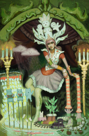 • Nadezda is a painter, concept artist, photographer, sculptor, and poet. Her artwork is focused on narratives carefully gathered from the hidden chambers of her imagination as well as live theater-inspired work with actors, dancers, and models. Like a quilt stitched of poetic realities, Nadezda’s mysterious world defies the mundane. With a non-linear creative process flowing between different media, the artist explores various vantage points in her creations. Such a dynamic approach inspires her mind’s eye to focus on the worlds within and evoke an uninterrupted, creative transmission which is then channeled through her paintings, drawings, sculpture, photography, writing and film.