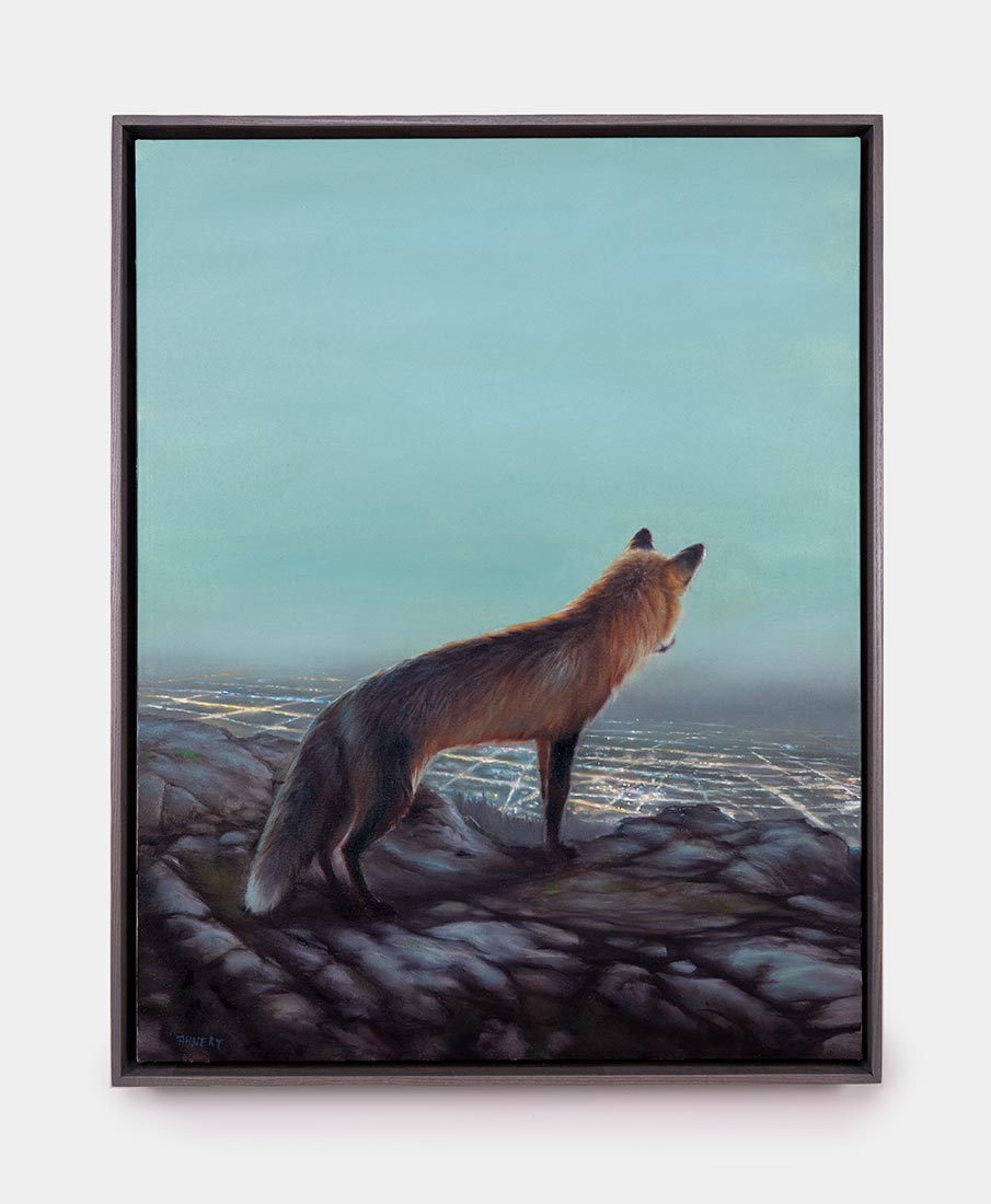 Toronto-based artist Richard Ahnert takes anthropomorphic painting to a new level, lacing it with a quiet, yet unmistakable animism– an abiding kinship between human and animal. He uses the relationship between animals and humans to explore themes of emotion, metaphor, and narrative with a satirical twist. Storytelling, understated humour, and deep reflection are at the heart of his practice.