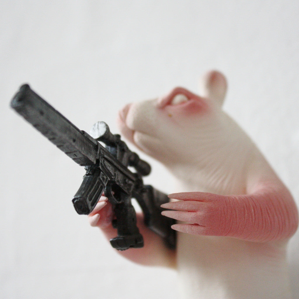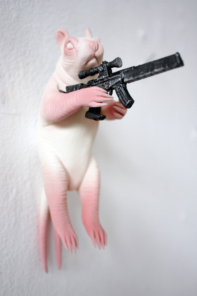 Erika Sanada'searly inspirations stemmed from creatures and characters of horror films. Watching these stories were a way for her to escape unpleasant realities during childhood. She creates intricate, hairless ceramic creatures—often adorable but also unsettling and bizarre. Her artwork has been published in Hi-Fructose Magazine, Hey! Magazine and Beautiful Bizarre Magazine. Sanada is represented by Modern Eden Gallery in San Francisco where the artist currently lives and works.
