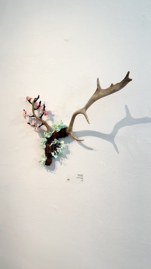 • Mixed media sculpture: steel, epoxy, cotton, antler, polyester, paint, patina