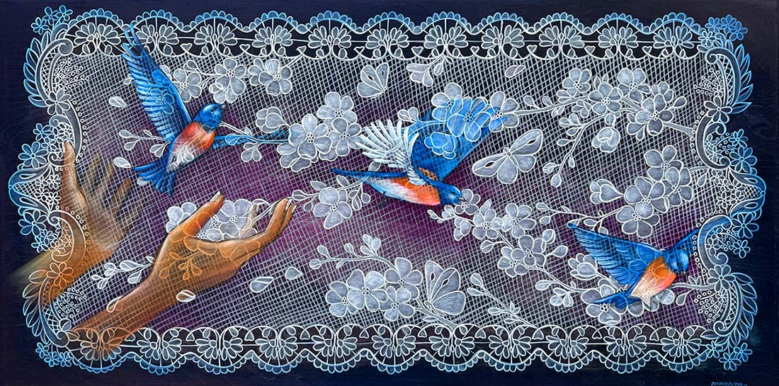 • Amandalynn is an artist with an array of expertise in different mediums and applications. She is a long time San Francisco based Muralist, Fine Artist, Conservator, Sign Painter and Designer. Within her fine art, Amandalynn is recognized for her sensual portraits of seductive yet secretive women. Her street art murals reflect similar imagery, which she began painting on the streets of San Francisco in 2001, with the Seventh Letter crew. Amandalynn currently works as a Sculpture Conservation Paint Specialist, using many of her learned techniques from her continued work in the Automotive painting industry.