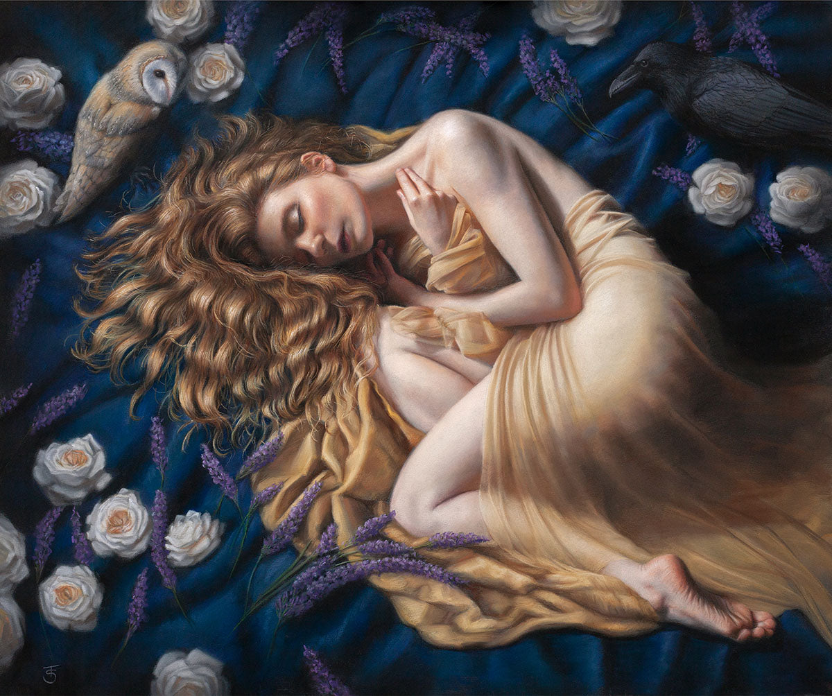 Tina Spratt is best known for her paintings of the female figure, either in oils or pastel, her subjects are often lost in introspection, or surrounded by the fascinating textures of a myriad of fabrics.