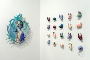 Walitzki's work is created through a cutting-edge technique which combines oil painting and mixed media on laser-cut panel. The process starts with a watercolor underpainting to begin the composition & texture, which is transferred to the panel on ricepaper and then lasercut. Each piece is completed with many layers of oil glazes for depth and detail.