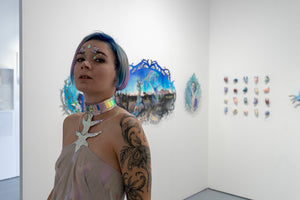 Redd Walitzki is a leading New-Contemporary artist, born in Germany and currently based in the US., Androgynous and elaborate, Walitzki's pieces are a marker of life, commemorating a moth’s four week- long flutter in the same celebratory way they do a human being’s ninety-year journey. Much of their work is inspired by the lush rainforests of the Pacific Northwest and the ornate Baroque ornamentation of her native Bavaria. The vivid muses in their paintings are influenced by the glamour of high fashion, but Walitzki’s works also often explore the darker side of human impact on ecology.