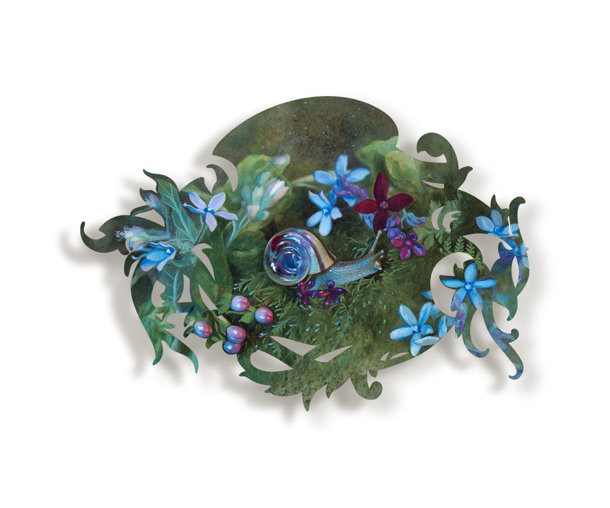 • Modern Eden Gallery is pleased to present Exquisite Corpse, a solo exhibition of new paintings by Seattle-based artist Redd Walitzki. Redd Walitzki returns to the gallery with a series rooted in the transformation of decay into new life. These paintings explore the relationship between entropy and new growth; they pull at the petal edges of our fascination with death and the tragic muse. The line between the inert and transformed is not always clear in Walitzki's new work, where translucent flesh turns to foliage, and flora becomes fauna. These lush and swirling paintings feature figures sprouting flowers, salamanders bursting into flame, and animals decaying into fresh blossoms. Intricately shaped frames likewise reclaim life from hardened immobility, as their baroque and curling laser cut forms seek purchase on the gallery walls.