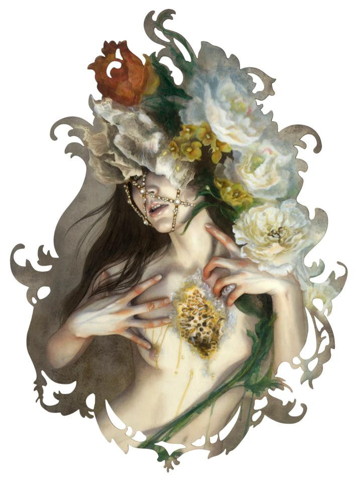 Oils and Mixed Media over Rice-paper on Laser Cut Panel
