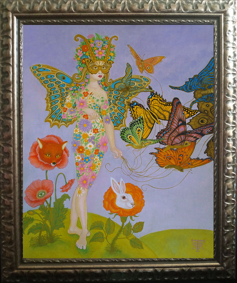 Tino Rodríguez is a Mexican-American painter. Born and raised in Guadalajara, Mexico, Rodriguez was influenced by the symbolism and themes evident in the Catholic churches of his youth. His work was also influenced by his absorption of fairy tales. His work incorporates fantastical imagery combining animal and human forms, as well as dream-like backgrounds and settings. His work has been exhibited at numerous venues in San Francisco. The exhibition Tino Rodríguez: The Darkening Garden/El Jardin al Anochecer was featured at the San Jose Museum of Art in 2003. Rodriguez studied at the Sorbonne in 1990. He received his Bachelor of Fine Arts degree from the San Francisco Art Institute and his Master of Fine Arts from the University of New Mexico.
