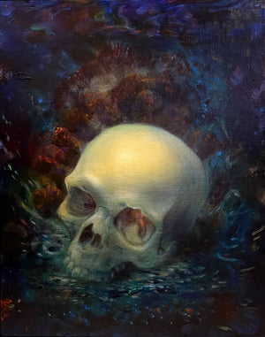 Through painting and drawing, Martin creates surreal, dream-like compositions of his subjects. He is influenced by his roots, growing up in Southern California during the 80’s & 90’s, where his pluck choices of hues dominate his artwork. Martin’s portraits are loosely haloed by floral and fauna; these haloes embody his Native American (Mexican/Yaqui) roots, taking the place of warbonnets which are attributed to males and masculinity during Native American rituals. The ring of botanical designs also reference Martin’s Russian heritage, through a reinterpretation of kokoshniks, which are solely attributed to the feminine. Several portraits depict their subjects conflicted within their makeup, in high contrast, between light and dark, and contrasting color. At times the medium is scattered and abstracted within the compositions.